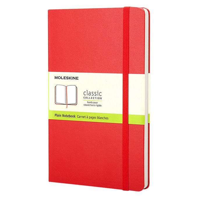 Das Moleskine Classic Large (13x21cm) Hardcover-Notizbuch ist eines der beliebtesten Notizbücher weltweit. Diese Version hat einen festen Kartonumschlag mit abgerundeten Ecken, säurefreies Papier, ein Lesezeichen, einen elastischen Verschluss und den charakteristischen Aufdruck "in case of loss" auf der Titelseite. Der Umschlag auf der Rückseite des Notizbuchs eignet sich für lose Notizen und enthält ein Faltblatt mit der einzigartigen Geschichte von Moleskine. Enthält 240 elfenbeinfarbene leere Seiten.