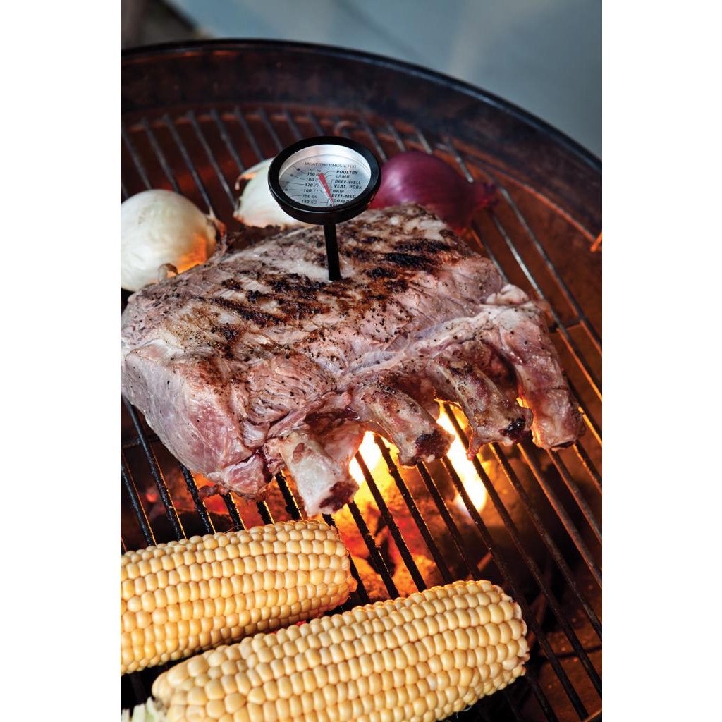 4tlg. Grillset mit Bratenheber und Grillzange aus Edelstahl, Grillhandschuh und Fleischthermometer.