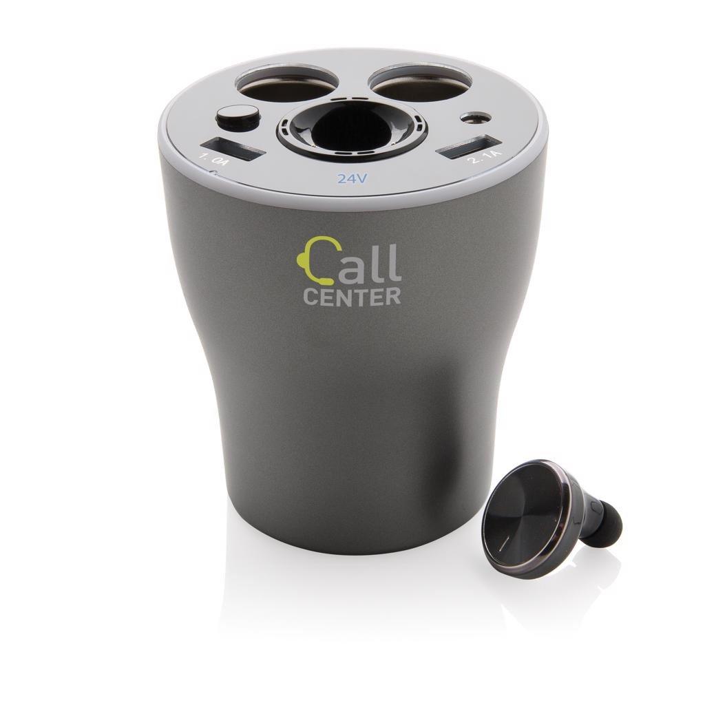 Auto Ladegerät für deinen Becherhalter mit dem du die Power des Zigarettenanzünders auf mehrere Anschlüsse verteilen. Mit 2 USB-Ports ( 2.1A/1A) und zwei Zigarettenanzünderanschlüssen ( 65W, 8-30V, 6A). Integrierter kabelloser Kopfhörer, damit beide Hände am Lenkrad bleiben. Die 40mAh des Kopfhörers ist in 1,5h voll geladen und kann dann eine ganze Stunde genutzt werden. BT 4.1, ABS Material.
