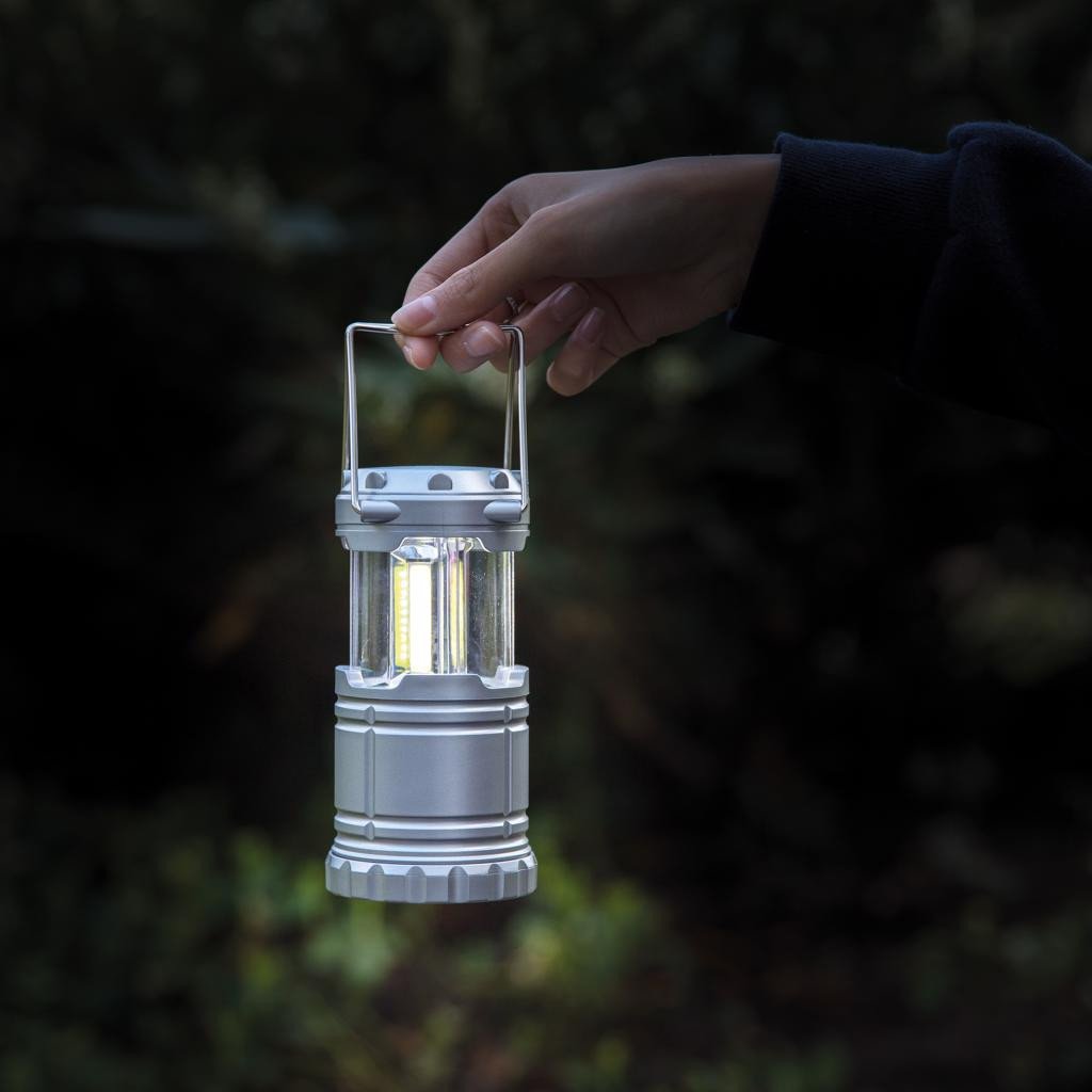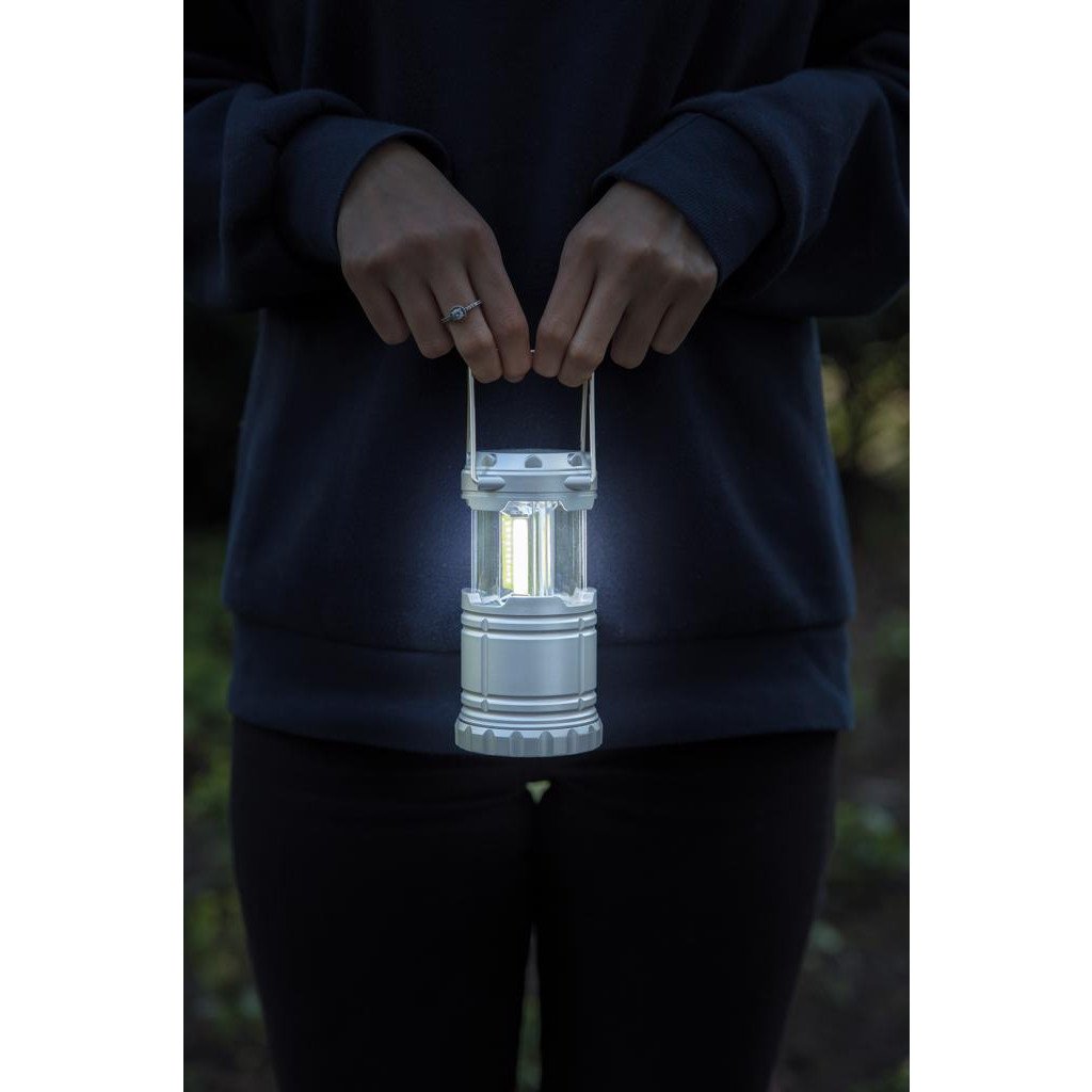 Diese ultrahelle COB Lampe für draußen aus leichtem ABS versorgt dich überall mit einer zuverlässigen und starken Lichtquelle. Perfekt für lange Wanderungen und Abenteuer! Die Lampe wird einfach eingeschaltet, indem man die Lampe mit Hilfe der Metallgriffe herauszieht. Die Metallgriffe können Multifunktional gebraucht werden um die Leuchte an einem Baum oder anderen Gegenständen aufzuhängen. Inklusive Batterien.