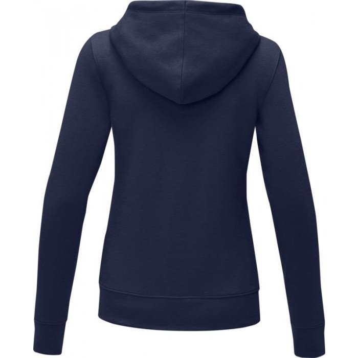Der Elevate Charon hat ein abreißbares Kopfschild für etikettenfreien Komfort. Der Hoodie hat eine Kapuze mit Kordelzug, eine Kängurutasche und einen Spiralreißverschluss in der Mitte der Vorderseite. Elastischer 2x2-Rippenstrick-Bund. Kragen und Bündchen aus 1x1-Rippstrick. Innen gebürstet, Nackenband aus demselben Stoff.