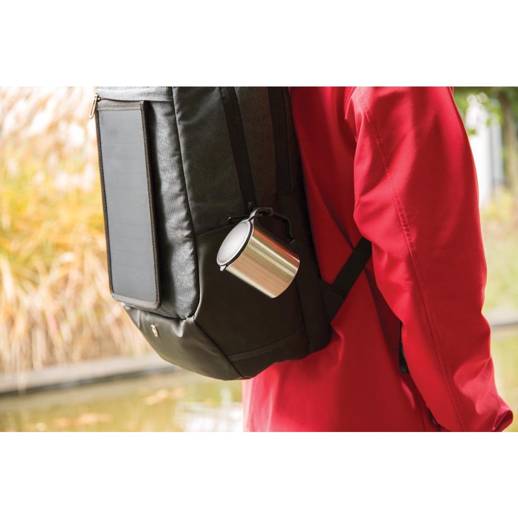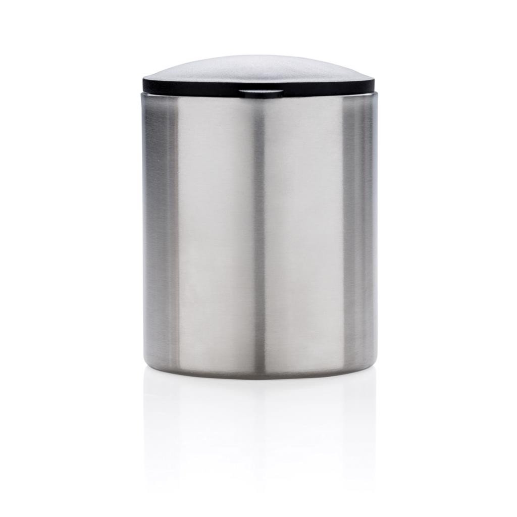 Doppelwandiger Becher aus Edelstahl mit PP Deckel und Griff. 200ml Fassungsvermögen.