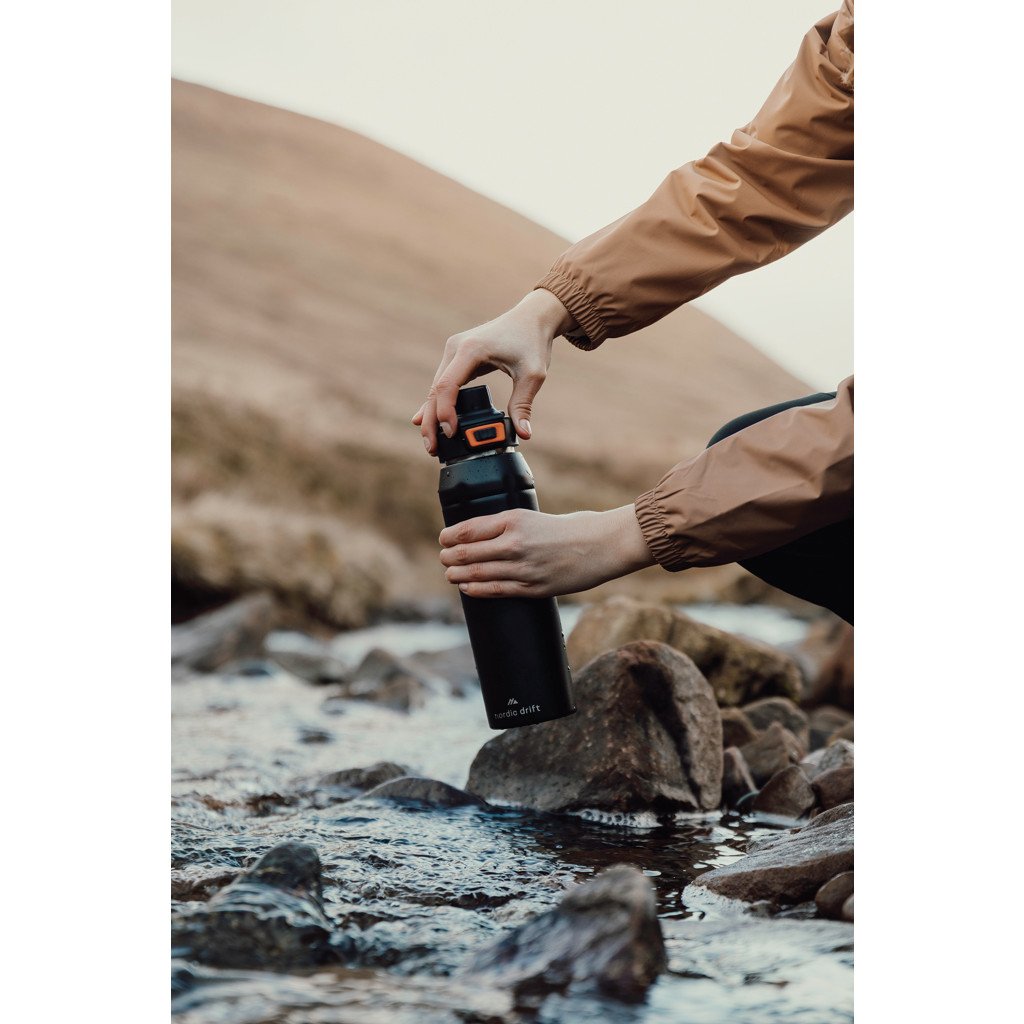 Lerne die Nordic Drift Flasche kennen, die zu 79 % aus RCS-zertifiziert recyceltem Edelstahl hergestellt wird. Sie hat ein Fassungsvermögen von 750 ml und verfügt über einen robusten, pulverbeschichteten Körper, einen Tragegriff und einen verschließbaren Deckel, damit dein Getränk sicher aufbewahrt wird. Der innovative Deckel bietet zwei Trinkoptionen: Drehe ihn einfach von der Ausguss- zur Trinkfunktion, um unterwegs bequem zu trinken. Diese auslaufsichere Flasche ist sowohl für Outdoor-Abenteuer als auch für den täglichen Gebrauch geeignet und verbindet Funktionalität mit Nachhaltigkeit. Wird in FSC-Geschenkbox geliefert.
