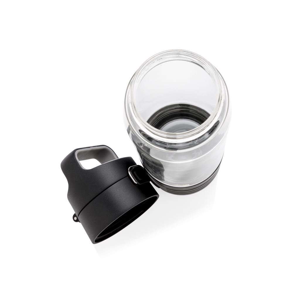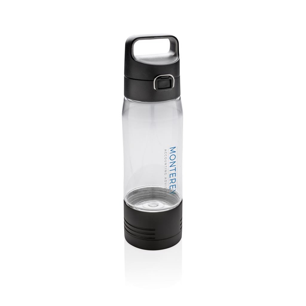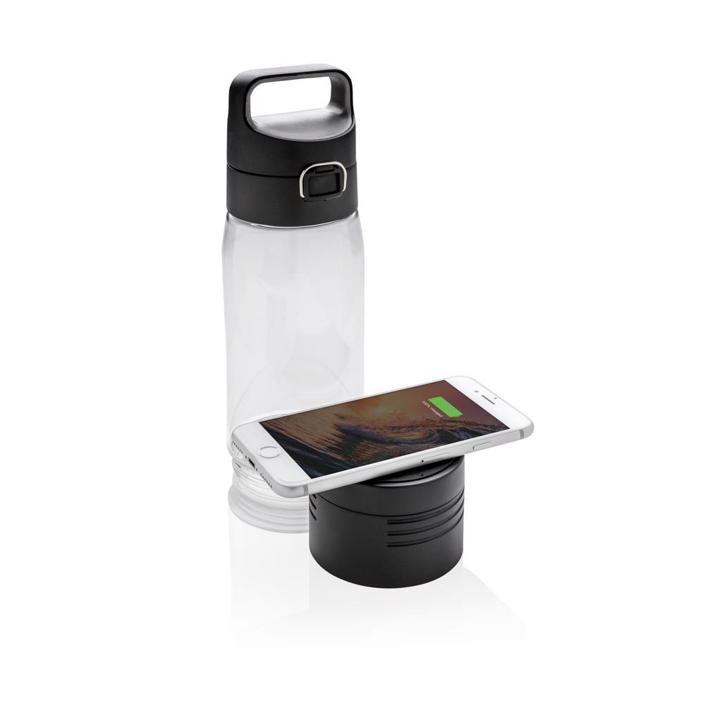 Auslaufsichere Tritanflasche mit Verschluss und Griff. Inhalt: 600 ml. Inklusive 5000 mAh kabelloser Powerbank im Sockel. Kompatibel mit allen QI-fähigen Geräten wie Android der neuesten Generation, iPhone 8 und höher. Eingang: 5.0V/1.0A. Ausgang: 5.0V/2.1A. Kabelloser Ausgang: 5W. Eingetragenes Design®.