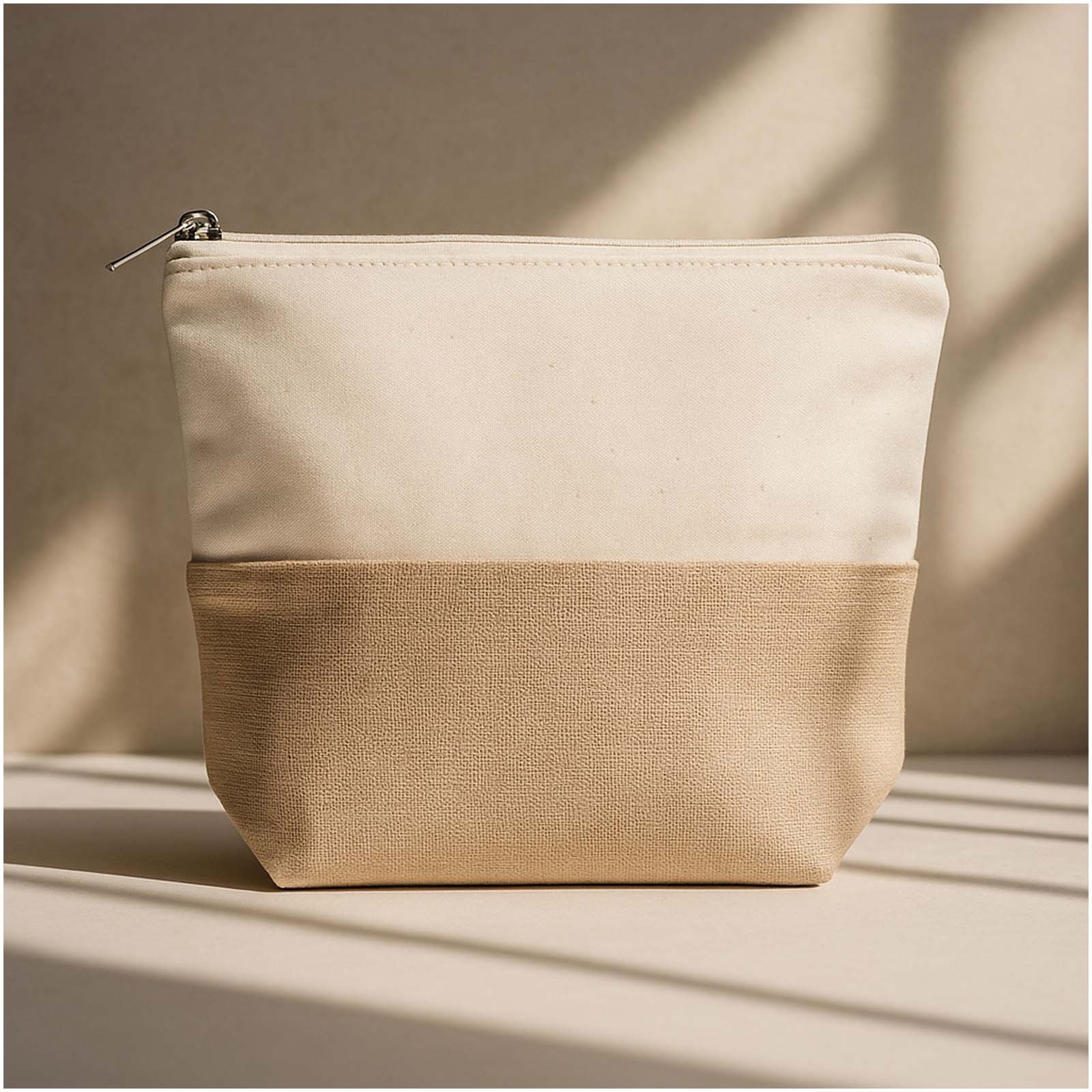 Die Today Tasche ist ein funktionales und stilvolles Reiseaccessoire. Der Reißverschluss schützt deine wichtigsten Utensilien, während das weiche Baumwollfutter für ein hochwertiges Tragegefühl sorgt. Sie besteht aus einer strapazierfähigen Mischung aus Bio Baumwolle (280 g/m²) und Jute, ist 22 × 17 × 6 cm groß und eignet sich ideal zur Aufbewahrung von Kosmetikprodukten, Schulmaterialien oder anderen kleinen Gegenständen für unterwegs.