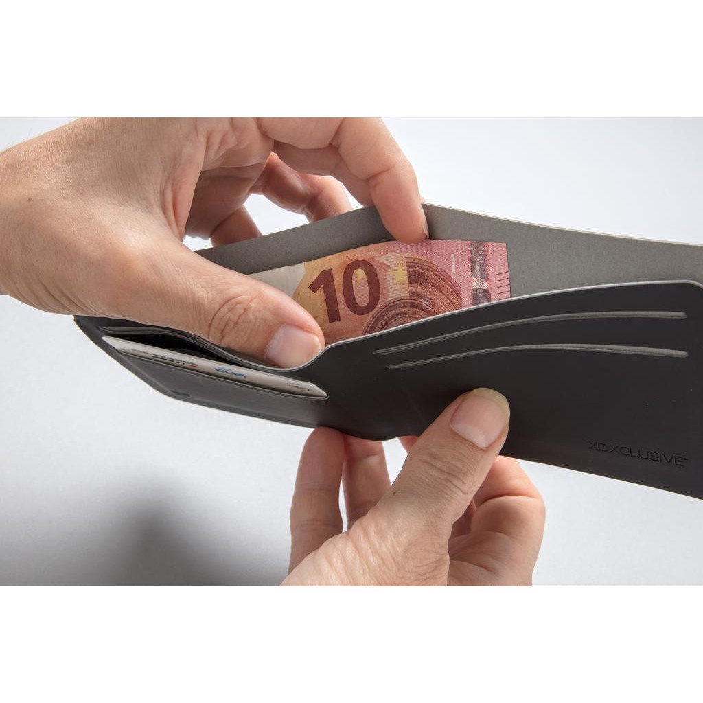 Diese ultradünne, leichte und sichere RFID-sichere Brieftasche mit zwei Fächern ist ein einzigartiges Design, das zu jedem passt. Das RFID-blockierende Material schützt vor Identitätsdiebstahl und elektronischem Taschendiebstahl. 4 leicht zugängliche Kartenfächer bieten Platz für bis zu 10 Karten. Eingetragenes Design®.