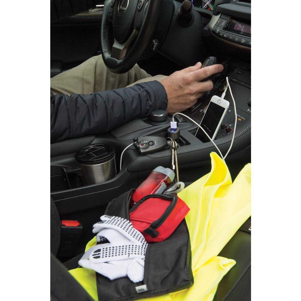 Sicherheitsset im 600D Polyesteretui, inkl. Dynamo Taschenlampe, Warnweste, Arbeitshandschuhe und Erste Hilfe Set inkl. Verbandsmaterial, Dreieckstuch, Schere und Tape; EN13485:2003 konform.