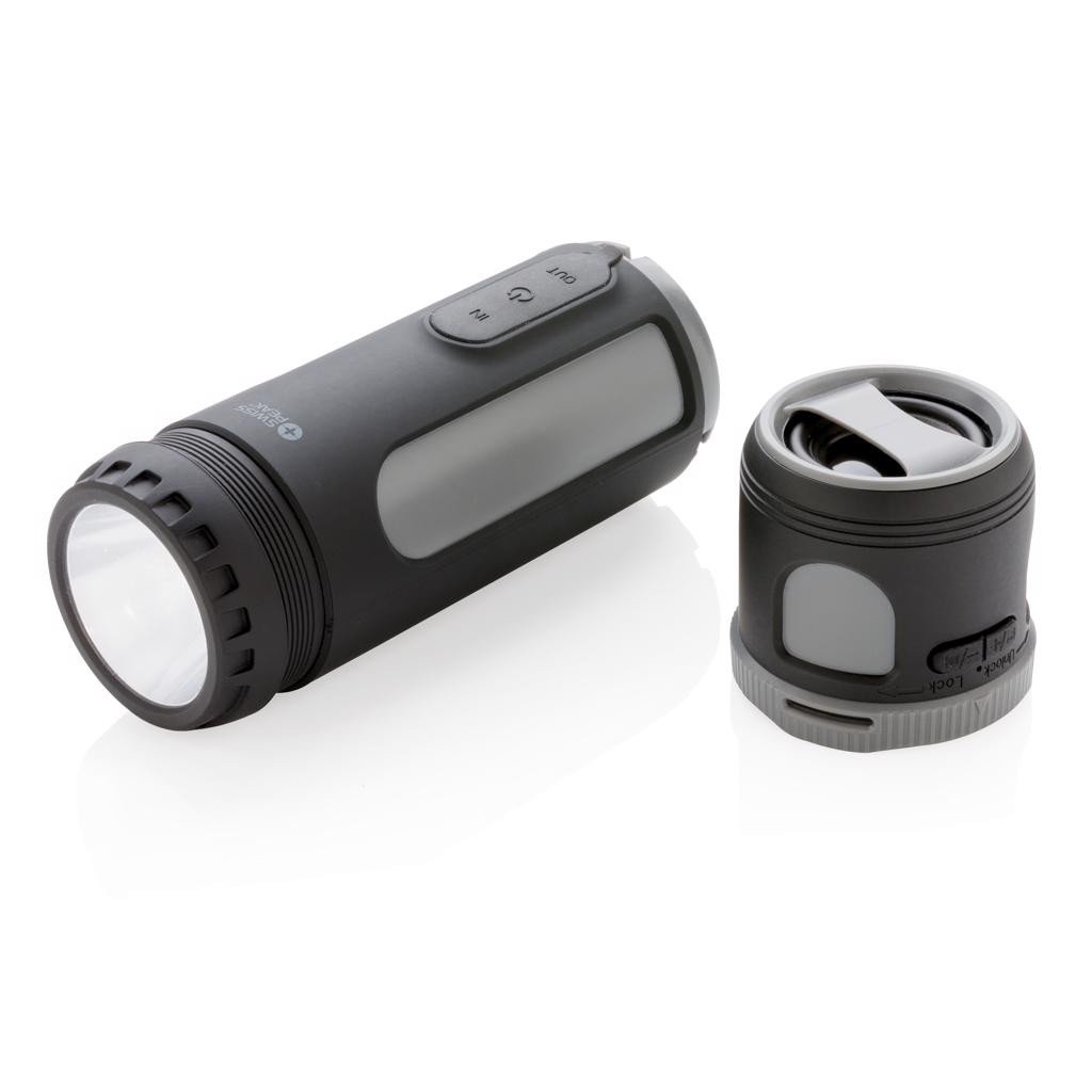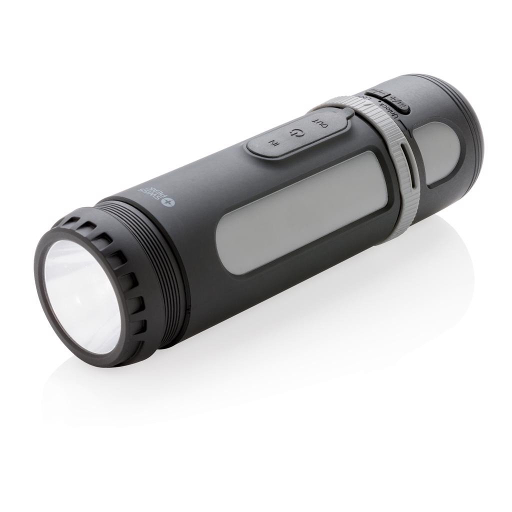 Einzigartiges 4-in-1 Tool mit Powerbank, BT Lautsprecher, Campingleuchte und Taschenlampe. Der 3W Lautpsrecher spielt Ihre Musik für bis zu 18 Stunden mit einer Ladung. Perfekt für längere Reisen. Die Powerbank hat eine Kapazität von 4500 mAh mit einem 5V/2A Output und 2A Input. Für alle Außeneinsätze eignet sich die sehr helle LED Leuchte (200-250lm). Die Taschenlampe mit Modi (normal, stark, schwach und blinkend) an einem Karabiner lässt sich bequem überall anbringen.
