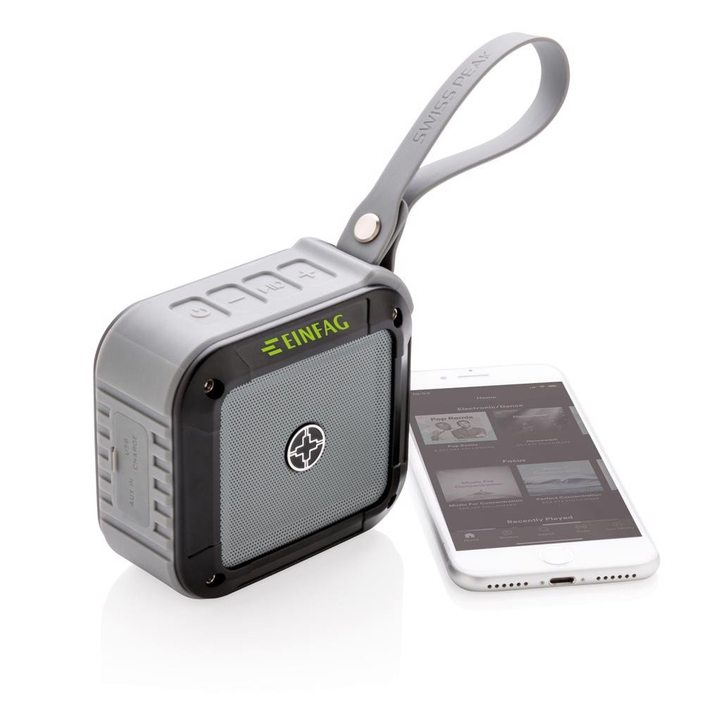 Stoß-, wasserfester (IPX5) und staubdichter wireless Lautsprecher mit leistungsstarkem 5W Lautsprecher und wiederaufladbarer 1.500mAh Batterie. Mit einem Aufladevorgang können Sie bis zu 10h lang Ihre Musik genießen! Der Lautsprecher verfügt über eine Freisprechfunktion, kann aber auch mit dem inkludierten 3,5mm Audio Kabel verwendet werden. Inkl. Silikonband zum Aufhängen.