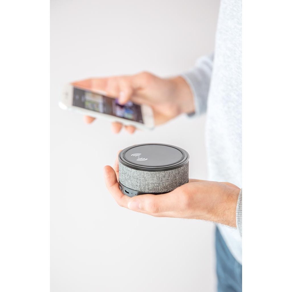 Dieser trendige Lautsprecher bietet Ihnen die Möglichkeit Ihr mobiles Gerät zu laden während Sie Ihre Lieblingsmusik abspielen. Beziehen Sie den Strom mit Hilfe des 150cm Micro-USB Kabels und schon können Sie von beiden Funktionen Gebrauch machen. Der Lautsprecher verfügt über zwei 3W Lautsprecher und einem 5W Wireless-Charger. Der Lautsprecher ist mit einer 400 mAh Batterie und BT 4.1 ausgestattet und ermöglicht Ihnen somit einen Musikgenuss von bis zu 3 Stunden auf einer Reichweite von bis zu 10 Metern. Input: 5V/1A. Wireless Output: 5V/1A 5W.