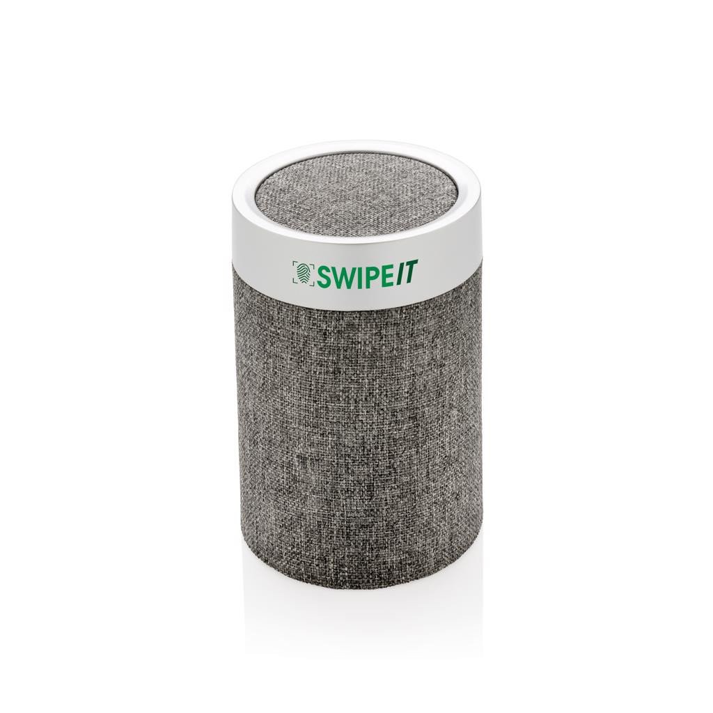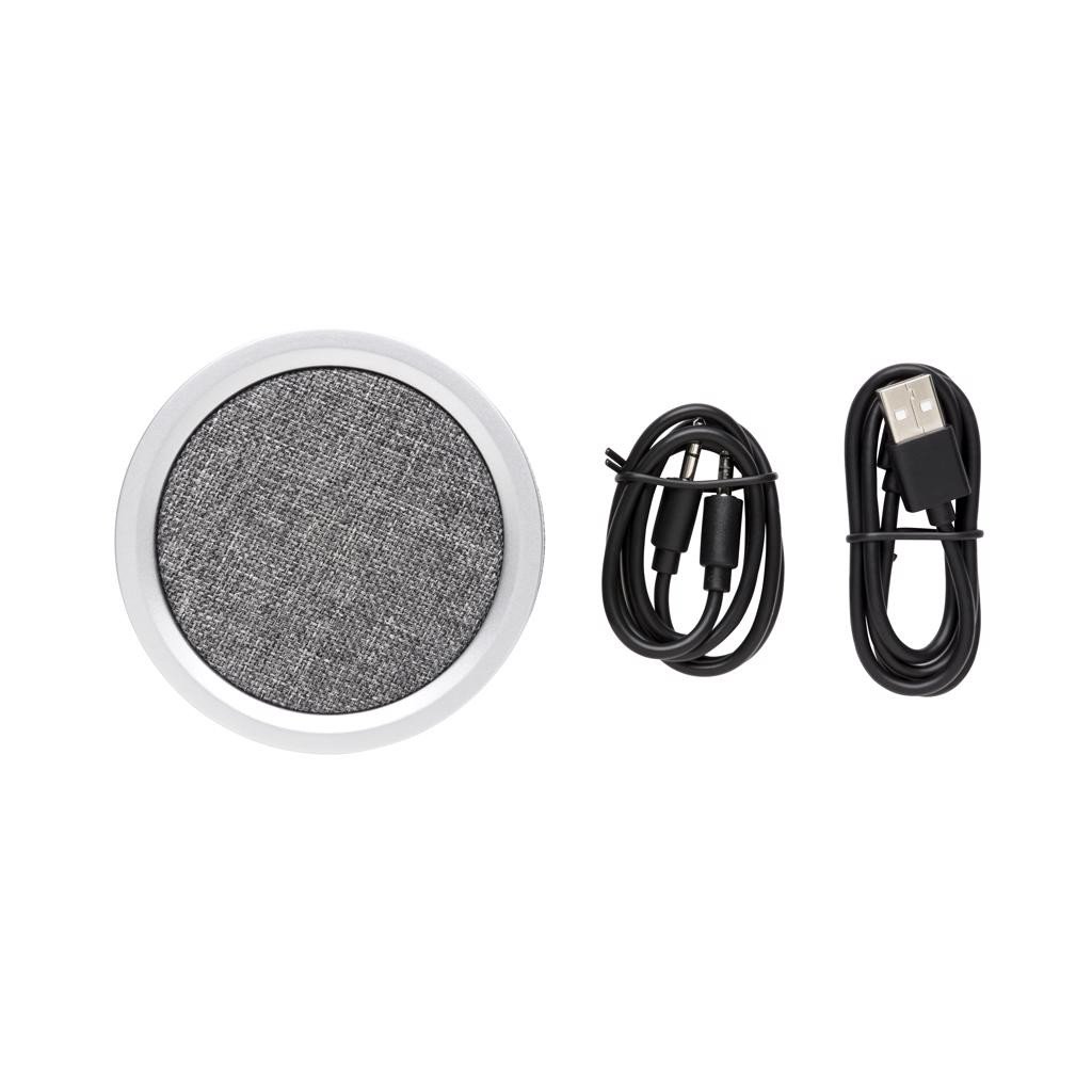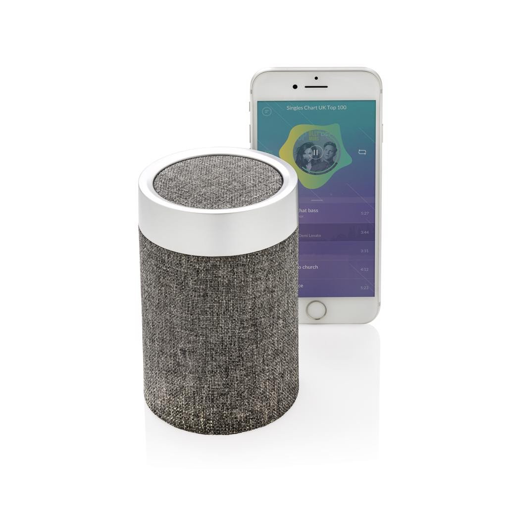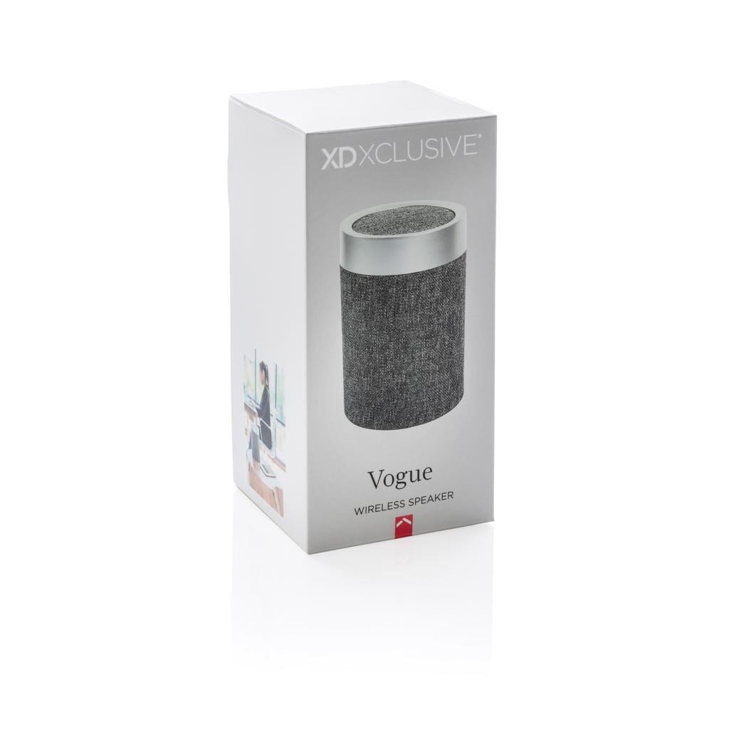 Der kabellose Lautsprecher Vogue 3W kombiniert elegantes Design mit den besten Beats für dein Zuhause oder Büro. Die trendige runde Form und das Stoffmaterial sehen überall fantastisch aus, wo du ihn aufstellst. Der Artikel verwendet BT 4.2 für eine reibungslose und superschnelle Verbindung. Es verfügt über einen 1.200 mAh-Akku, der bis zu 5 Stunden Musik abspielen kann und in weniger als 3 Stunden wieder aufgeladen ist. Die Funkreichweite beträgt 10 Meter. Der Lautsprecher hat glatte Gummistreifen an der Unterseite, die ein Verrutschen verhindern und den Klang verbessern. Mit Mikrofon und Pick-up-Funktion zum Annehmen von Anrufen.
