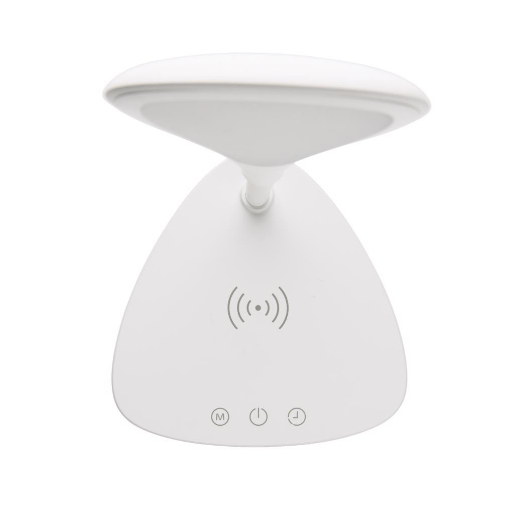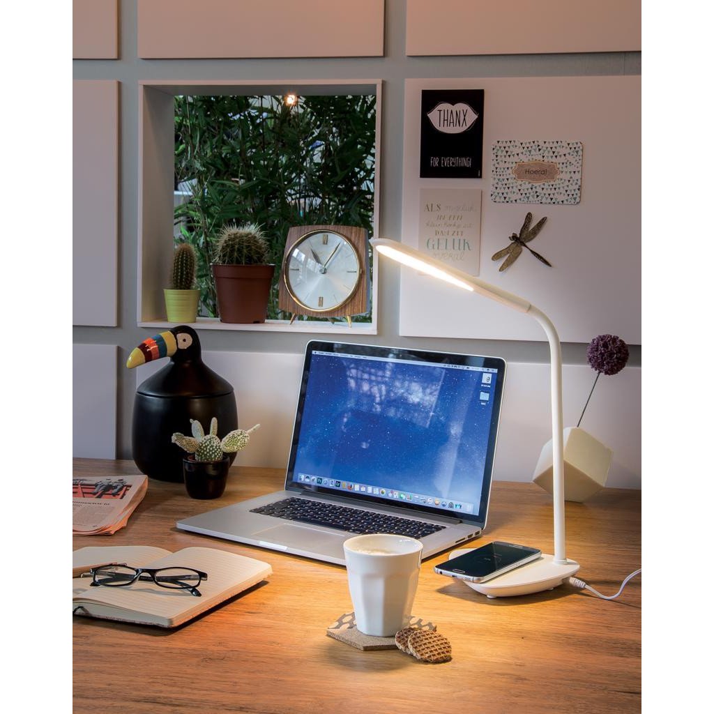 Schreibtischlampe mit superhellem 40er LED-Licht und kabellosem 5W-Ladepad in der Basis. Das Licht kann in 3 Modi eingestellt werden: natürliches Licht, gelbes Licht und weißes Licht, je nach Situation und Vorliebe. Mit Timer-Funktion für den Fall, dass du willst, dass sich das Licht automatisch abschaltet, um Energie zu sparen. 250 Lumen. Der Artikel wird mit einem EU-Stecker-Ladegerät und einem 1,5 Meter langen Kabel geliefert. Kabelloses Laden kompatibel mit den neuesten Android-Generationen, iPhone 8 und höher. Eingang: 1A. Ausgang: 5V/1A. Kabelloser Ausgang: 5W.