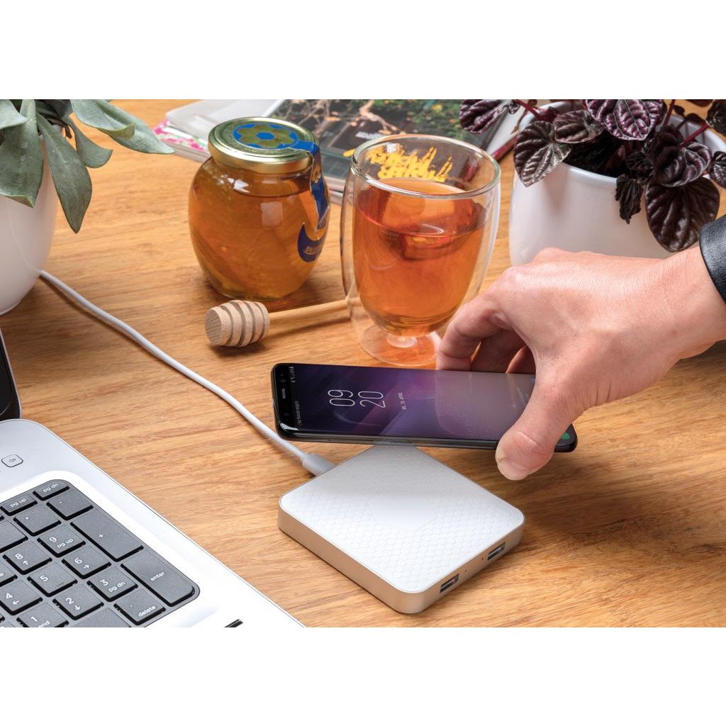 Mit diesem trendigen kabellosen Ladegerät, das auf jedem Nachttisch oder Schreibtisch eine gute Figur macht, bleibt dein Handy geladen. Schließ Vibe einfach mit dem 150 cm langen Micro-USB-Kabel an eine USB-Stromquelle an, und du kannst dein Handy aufladen, wann immer du willst. Hergestellt aus Aluminium und ABS. Kabelloses Laden kompatibel mit allen QI-fähigen Geräten wie Android der neuesten Generation, iPhone 8 und höher. Eingang: 5V/2A, kabelloser Ausgang: 5V/1A 5W. Eingetragenes Design®.