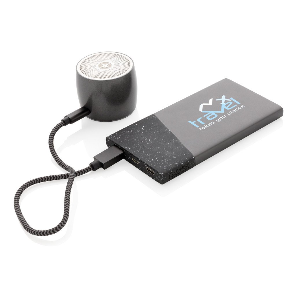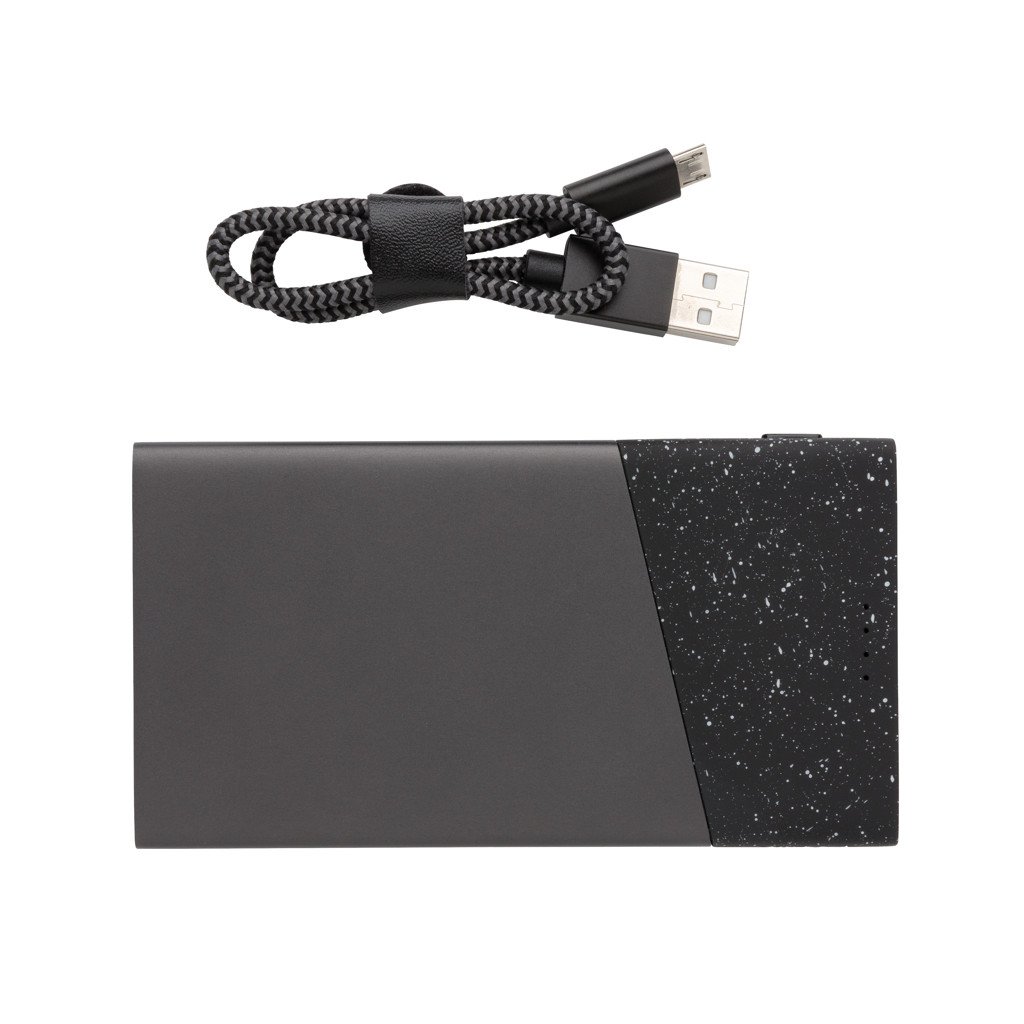 Diese 5.000 mAh Powerbank aus hochwertigem Aluminium passt bequem in jede Tasche. Ist die A-Grade Lithium Polymer Batterie der Powerbank voll geladen können Sie Ihr Smartphone wieder bis zu 2x aufladen. Mit Ladestandsanzeige. Micro-USB Port IN: 5V/2A; Type-C Input: 5V/2A; USB-Output: 5V/2.1A. In Geschenkbox verpackt mit Nylon Ladekabel.
