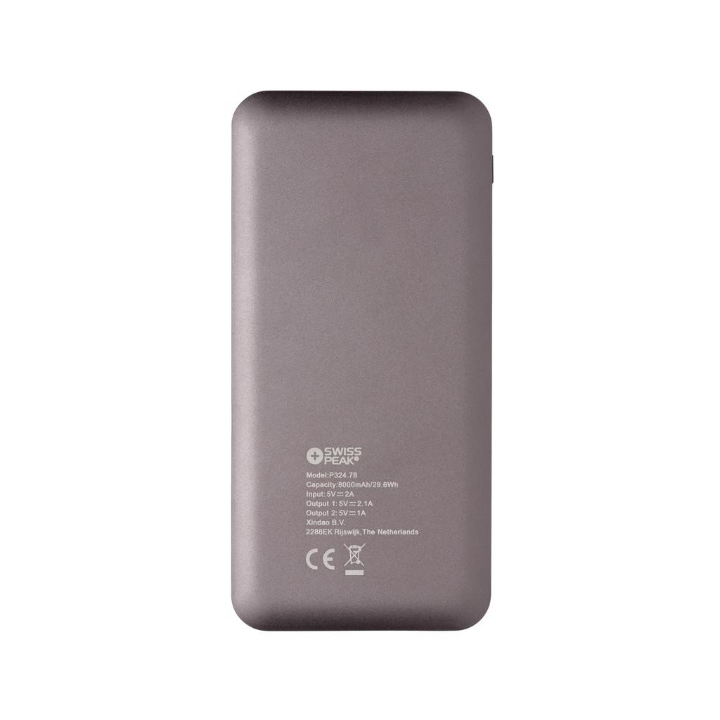 Die 8.000mAh Powerbank aus langlebigem Aluminium mit Lithium-Polymer Batterie hat ein digitales Display zur Ladestandsanzeige, so wissen Sie immer, wann es Zeit ist sie wieder aufzuladen. Zum Laden kann der normale USB sowie Type-C verwendet werden. Die Powerbank kann durch Ihren 2A Input und Ouput schneller geladen werden als die meisten Powerbanks. Input: 5V/2A; Micro-USB port-in (for charging), Type-C Input: 5V/2A, USB Output: 5V/2.1A, Type-C Output: 5V/2.1A.