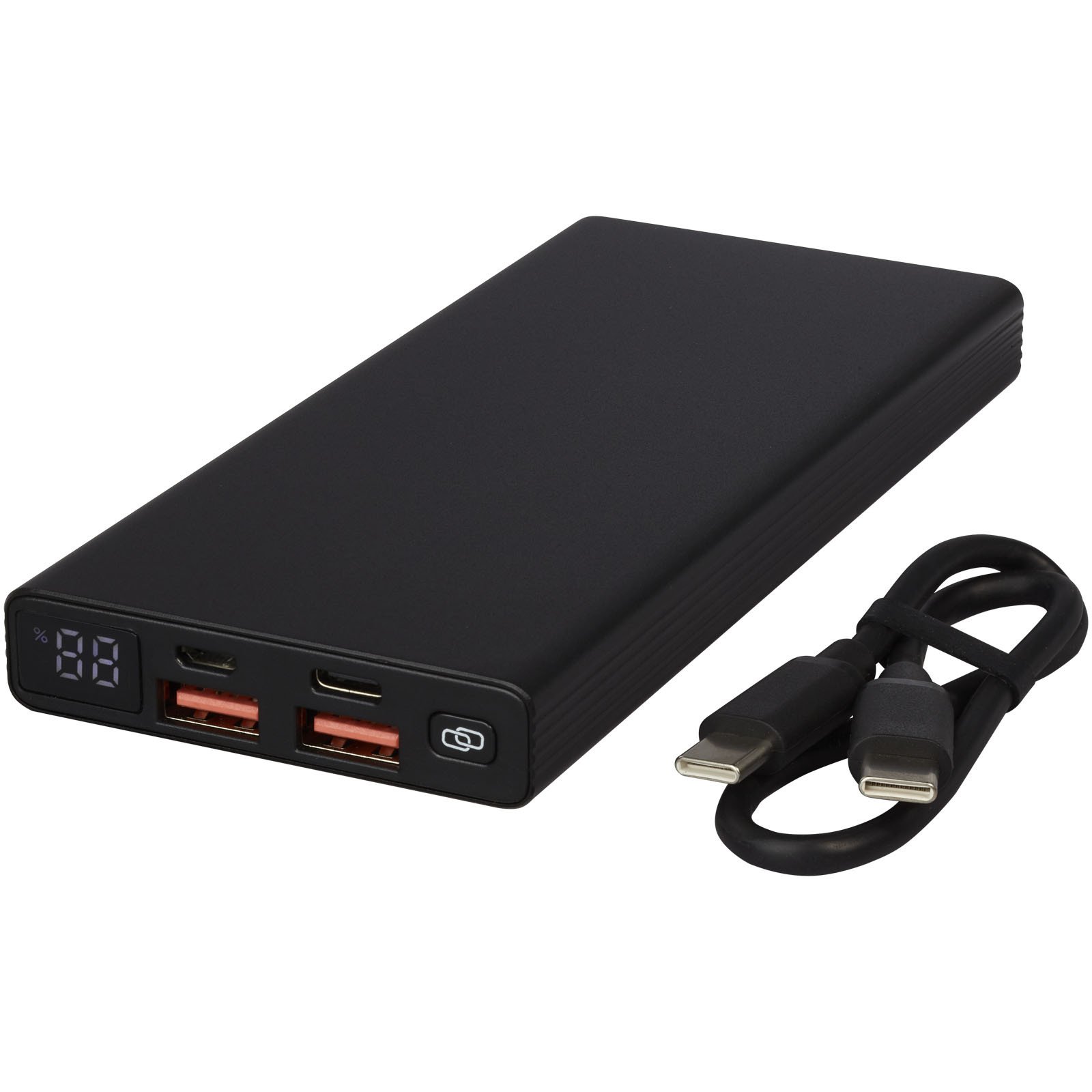Die Hybrid 10000 mAh 22,5W PD-Powerbank bietet eine superschnelle Ladegeschwindigkeit, sogar für deinen Laptop! Diese hochwertige, schlanke Aluminium-Powerbank mit Lithium-Polymer-Akku der Güteklasse A verfügt außerdem über eine praktische Digitalanzeige, die die verbleibende Energie anzeigt. Mikro-Eingang: 5V/2A, 9V/2A, 12V/1,5A max. Typ-C Eingang/Ausgang: 5V/3A, 9V/2A, 12V/1. 5A max. USB-A Ausgang: 4,5V/5A, 5V/4,5A, 5V/3A, 9V/2A, 12V/1,5A max. Typ-C + USB-A Ausgang: 5V/3A max. Gesamtleistung: 22,5W. Inklusive eines 30 cm langen TPE-Ladekabels Typ C auf Typ C 3A PD. Geliefert in einer hochwertigen Kraftpapierbox mit einem farbigen Aufkleber.