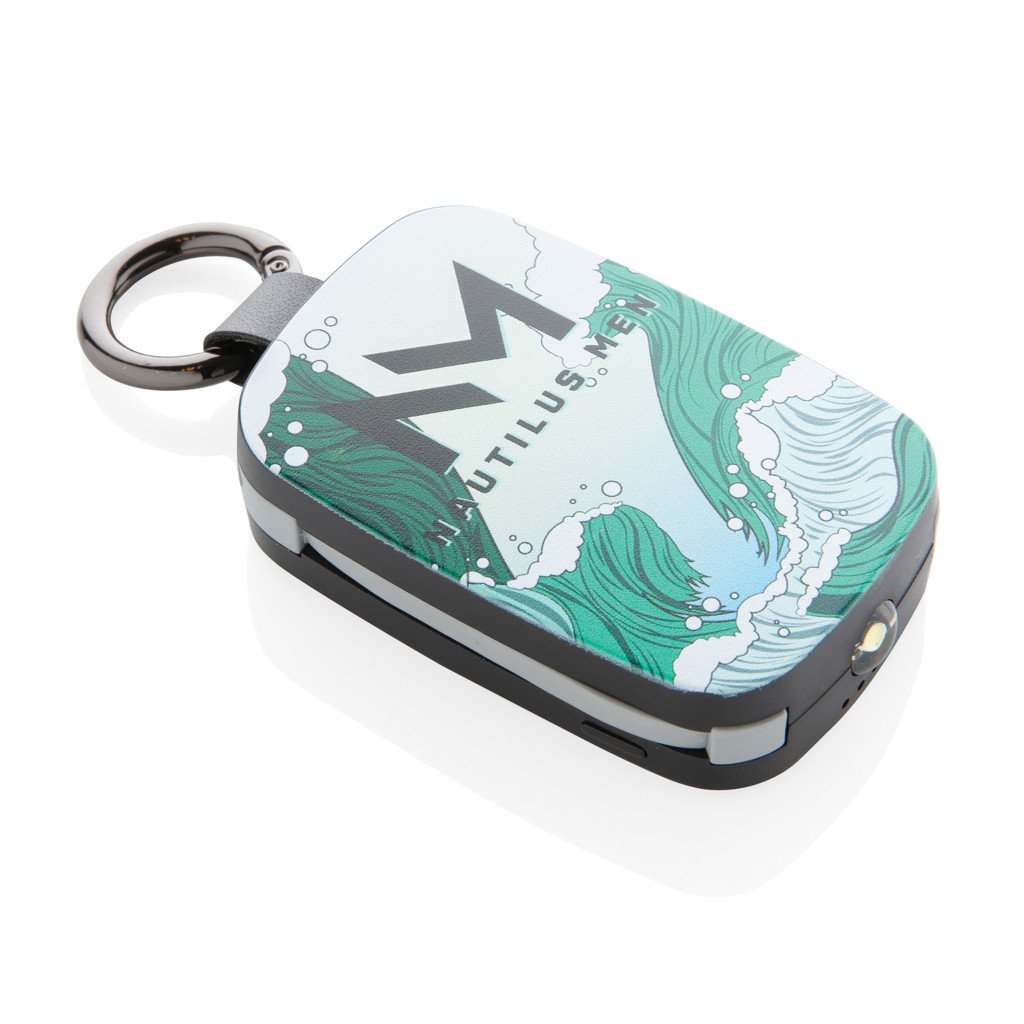 Du bist dir nicht sicher, wie du deine Druckdatei richtig gestaltest? Siehe auch die Konstruktionsrichtlinien für XD Collection Schlüsselanhänger Powerbanks an.