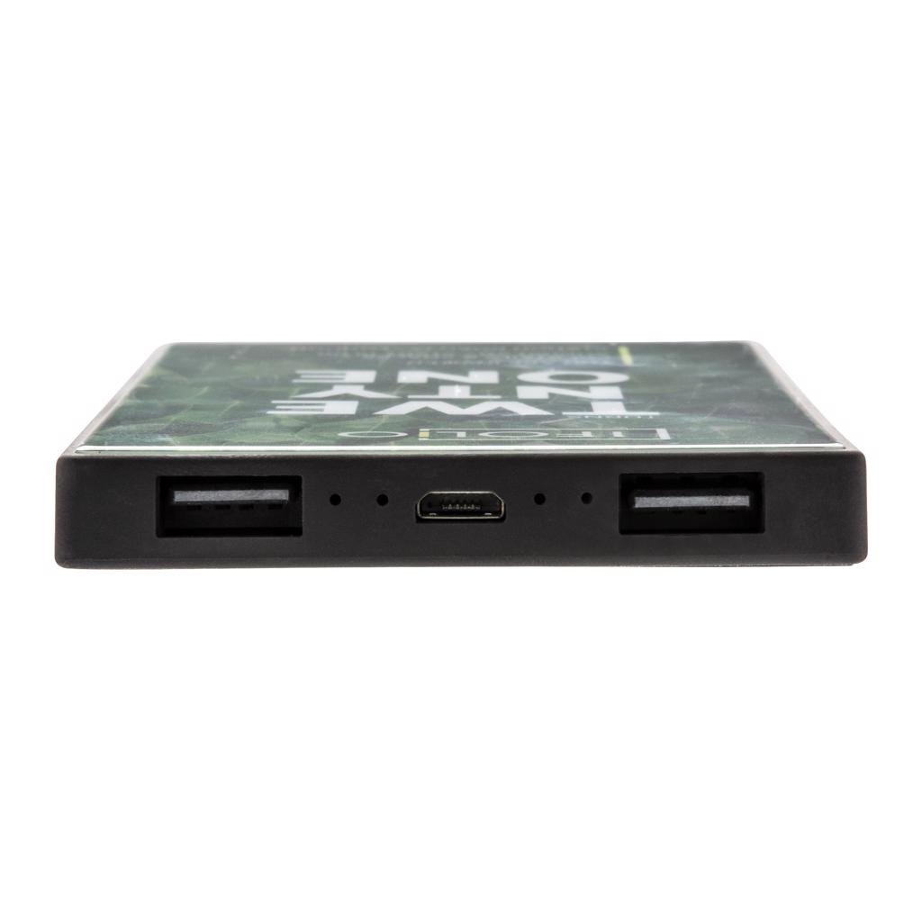 Moderne 5.000 mAh Powerbank aus ABS mit Sicherheitsglas über Ihrem vollflächigen Digitaldruck - ein ganz besonderes Geschenk. Durch die Dual-USB-Ports können auch zwei Geräte zeitgleich geladen werden. Mit Ladestandsanzeige. Die 5.000 mAh A-Grade Batterie ist eine Lithium-Polymer Batterie. Micro USB Input 5V/2A; 2X USB Output 5V/2A. Inklusive PVC-freiem TPE Micro-USB Ladekabel.