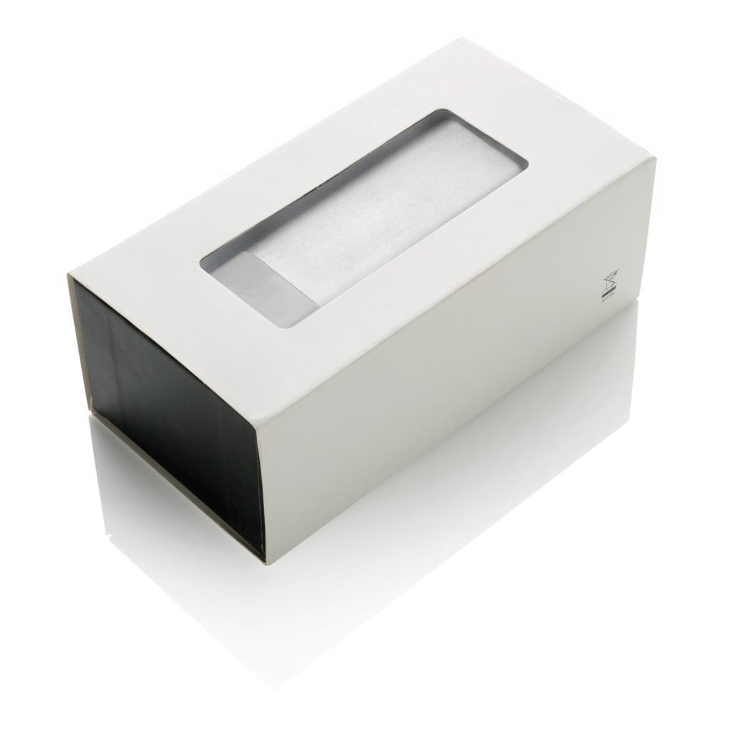 Stilvolle und leistungsstarke Powerbank aus Aluminium mit 8000 mAh Lithiumbatterie und doppeltem USB Port zum gleichzeitigen Aufladen von zwei mobilen Geräten. Der 2A Output bringt ausreichend Leistung zum Laden eines Tablets. Output 5V/2A, Input 5V/50 mAh.