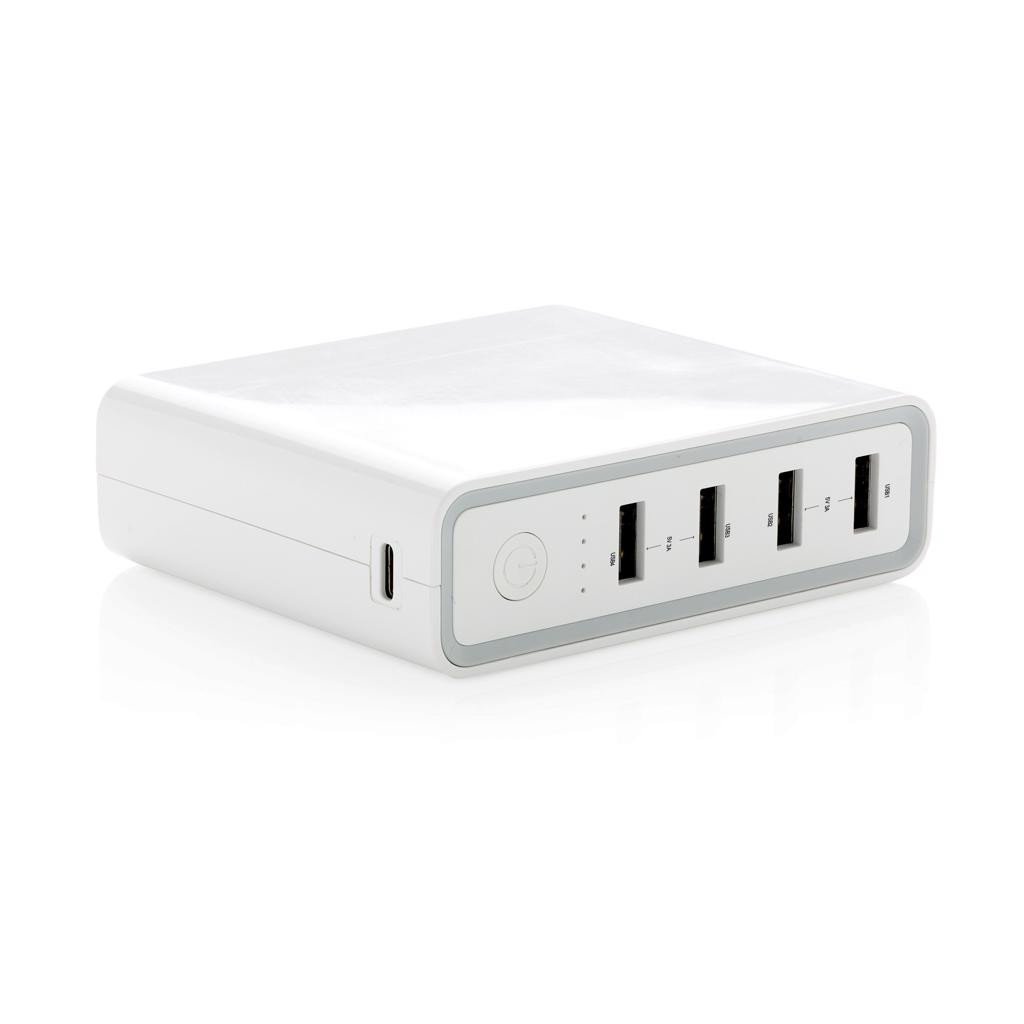 Kraftvolle aber tragbare 20.000 mAH Lithium Battery mit 4 USB Ports und einem Type C 3.0-Anschluß ( Input und Output). Die Powerbank kann sowohl über Micro USB ( 2A) als auch über den superschnellen Type C-Anschluß ( 2.4 Input) geladen werden. Output der 4 USB: 5V/2A - Output Type C: 5V/3A, 9V/3A,12V/3A, 14.5V/2.4A, 20V/2A.