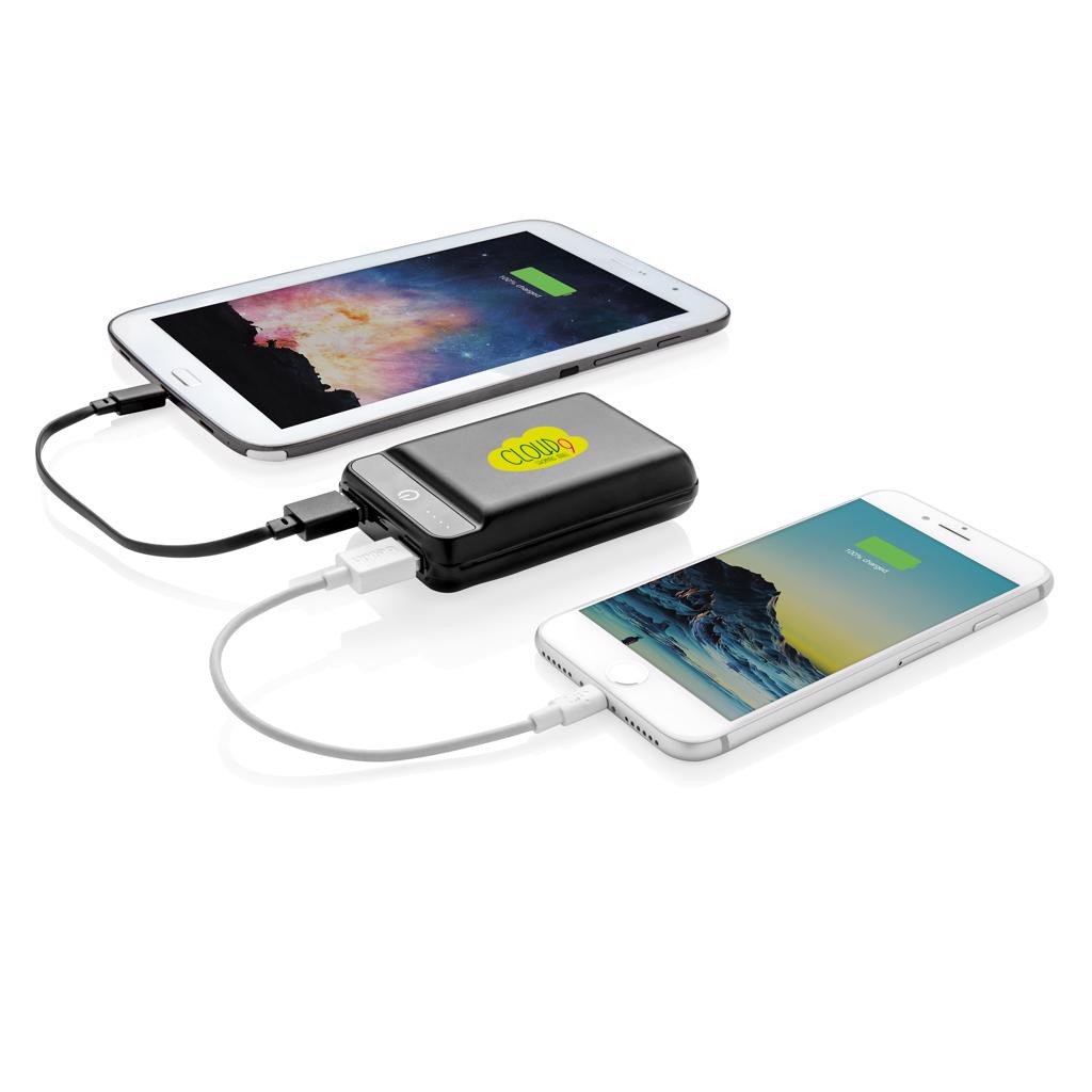 Praktische und stilvolle Powerbank welche Sie einfach in Ihrer (Hosen-)Tasche mitnehmen können, perfekt für unterwegs! Da die Powerbank mit einer langlebigen 10.000mAh Lithium Polymer Batterie ausgestattet ist, können Sie Ihr Telefon bis zu 4 Mal aufladen. Die Powerbank verfügt auch über eine Ladeanzeige, welche Ihnen genau angibt wie viel Energie noch verfügbar ist. Input: 5V/2.1A, Output: 5V/2.1A.