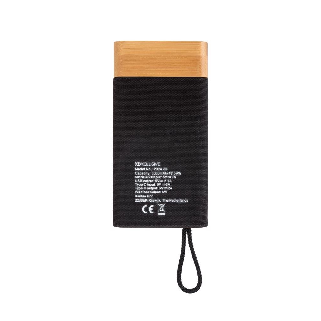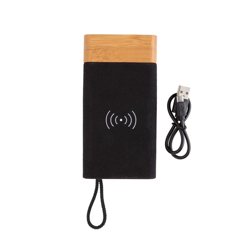 Mit dieser kabellosen Eco-Powerbank (5 W) bleibt dein Handy geladen. Die 5.000-mAh-Powerbank verfügt über 3 Ladeoptionen: kabelloses 5-W-Laden, Typ-C-Ein- und -Ausgang (2A) und einen regulären USB-Anschluss mit 2A-Ausgang für schnelles Laden. Das Gehäuse besteht aus strapazierfähigem Bambus und der Stoff aus einer Mischung aus 30% Bio-Baumwolle, 40% Hanf und 30% recyceltem PET. Kabelloses Laden kompatibel mit allen QI-fähigen Geräten wie Android der neuesten Generation, iPhone 8, 8S und X. Eingang: 5V/2A (Micro in), USB-Ausgang: 5V/2A Typ-C Eingang: 5V/2A, Typ-C-Ausgang: 5V/2A, kabelloser Ausgang: 5W (5V/1A). Eingetragenes Design®.