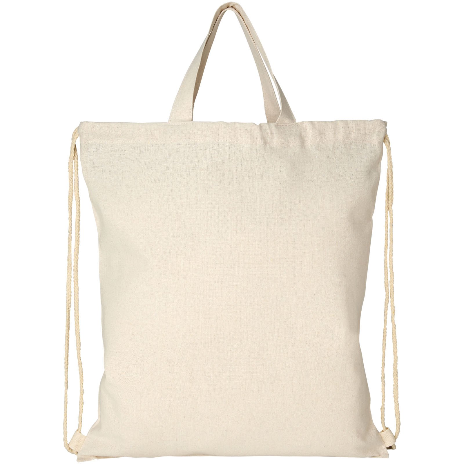 Rucksack mit Kordelzug aus 210 g/m² recyceltem Baumwoll-Polyester-Gemisch. Recycelte Baumwolle wird aus Verbraucherabfällen hergestellt, die in Textilfabriken beim Schneiden anfallen. Großes Hauptfach mit Baumwoll-Kordelzugverschluss. Ausgestattet mit zwei Griffen mit einer Fallhöhe von 14 cm. Aufgrund des Produktionsprozesses kann es zu leichten Farbabweichungen beim tatsächlichen Produkt kommen. Geeignet für ein Gewicht von bis zu 5 kg.
