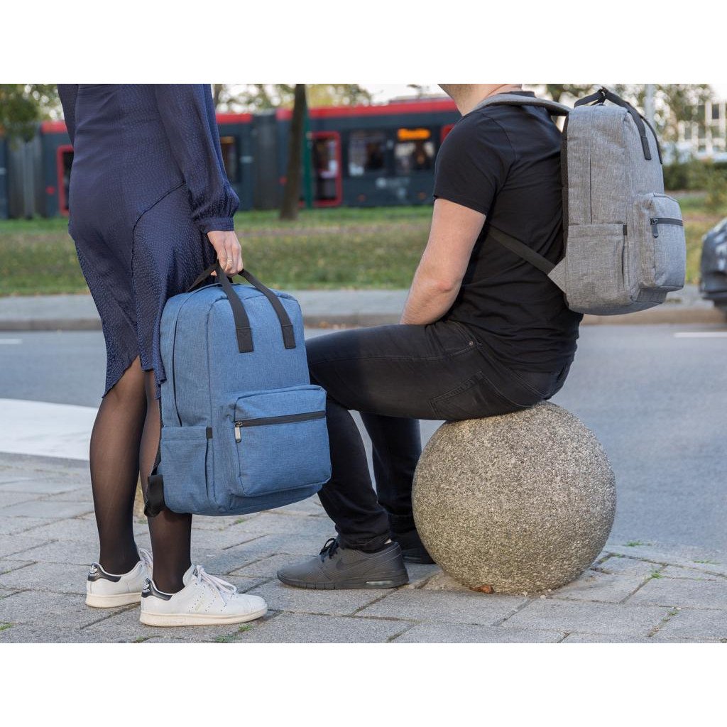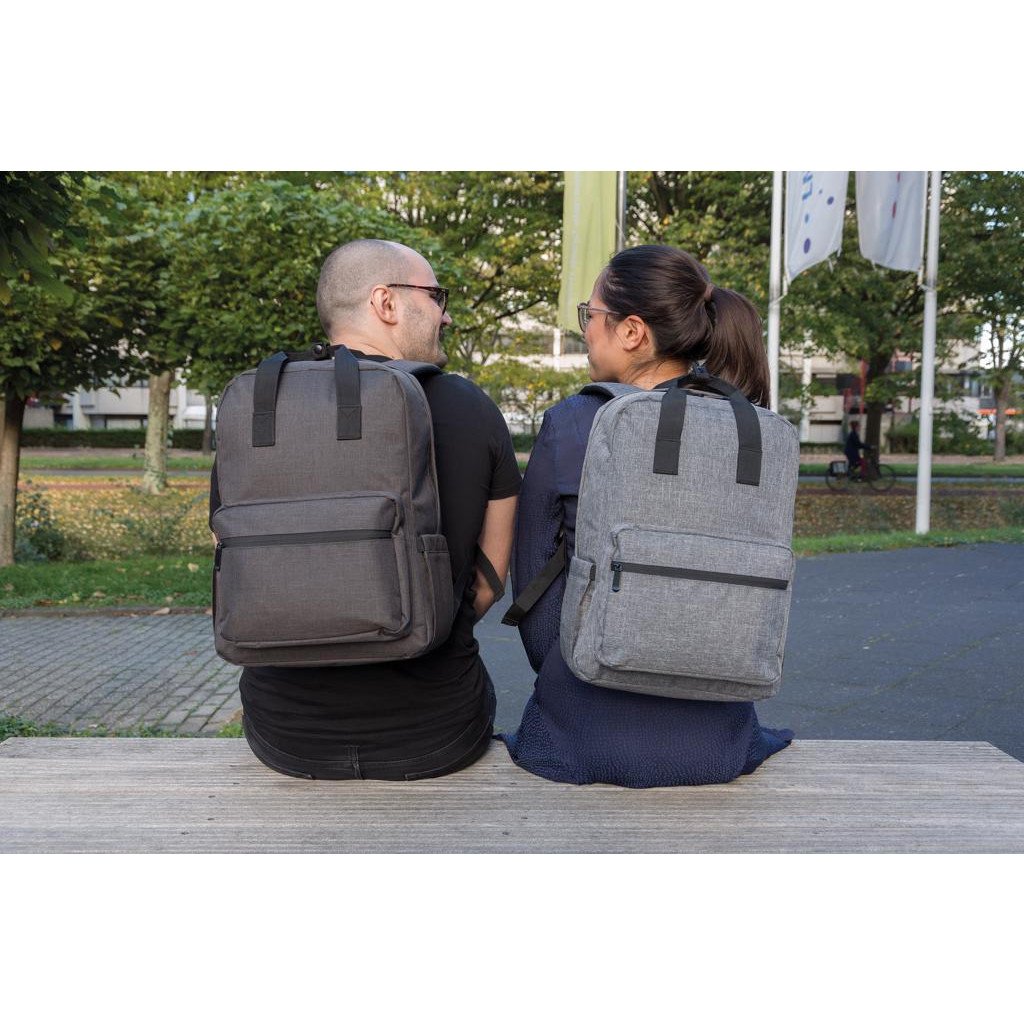 Diese vielseitige Tasche kann in der Hand oder als Rucksack getragen werden. Sie hat ein 15" gepolstertes Laptopfach und eine Vortasche mit Reißverschluss.