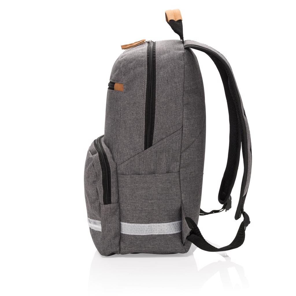 Ein Sicherheits LED Rucksack für alle Pendler. Aus 600D Two Tone Polyester mit trendigen braunen Details. Ein Hauptfach mit 13" Laptopfach, zwei Seitentaschen und 2 Seiten-Sleeves. Die LED mit 3 Einstellungen lässt sich vom Frontpanel aus bedienen. Inkl. 2x CR 2032 Knopfzellen.