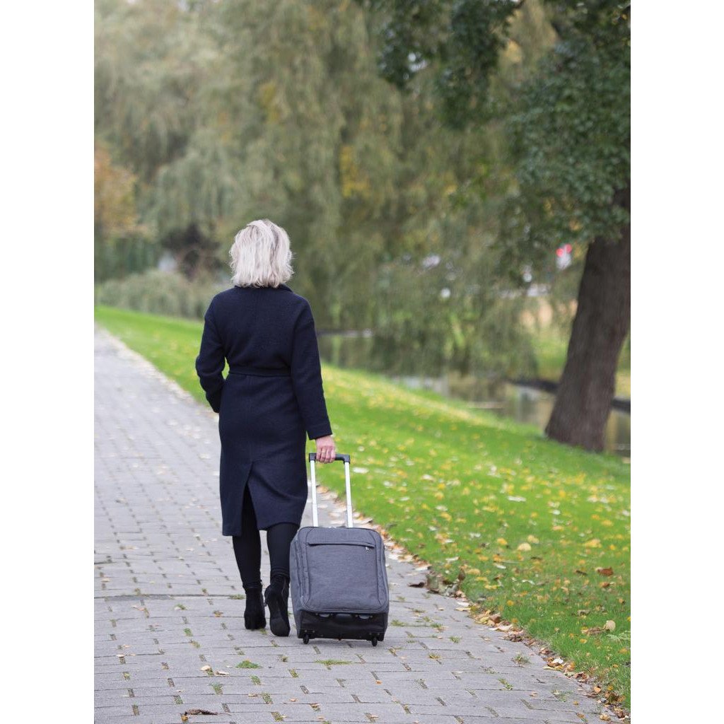 Dieser faltbare 600D Polyester Trolley mit 2 Rollen hat ein großes Hauptfach sowie eine Fronttasche mit Reißverschluss. Schnell und einfach lässt er sich zusammenlegen und findet so überall seinen Platz in Ihrem zu Hause.