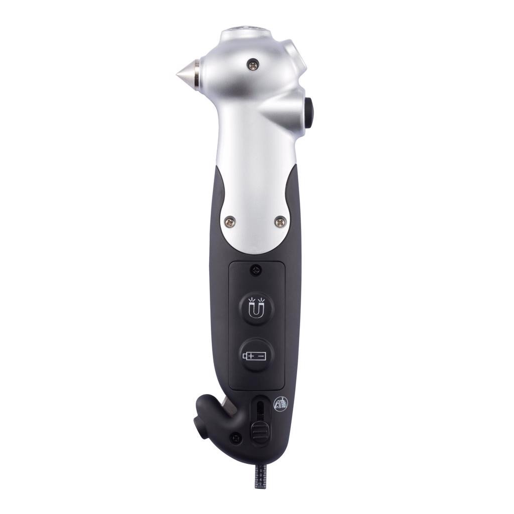 Multifunktionales Reifenmessgerät im ABS-Gehäuse mit allen notwendigen Sicherheitsfunktionen. Du kannst deine Reifen überprüfen und sogar die Luft ablassen, deinen Sicherheitsgurt durchschneiden, dein Fenster einschlagen und die Umgebung beleuchten.