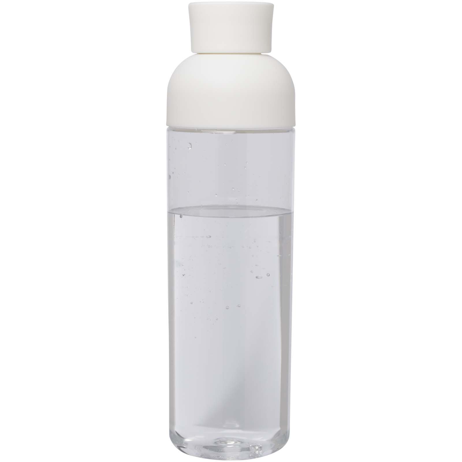 The Illuminate RPET water bottle is made from recycled plastic and features a comfortable silicone handle for easy carrying. Features a volume capacity of 600 ml and is designed to easily fit in the side pocket of a backpack, as well as in most car cup holders.