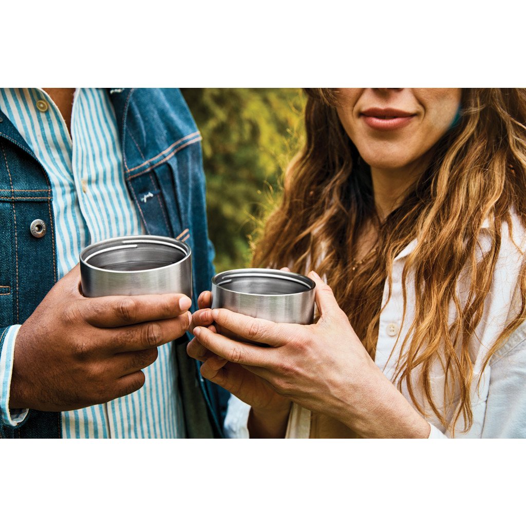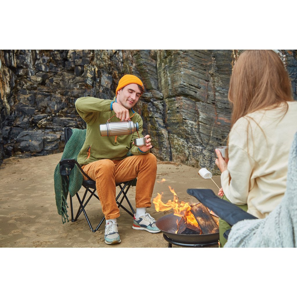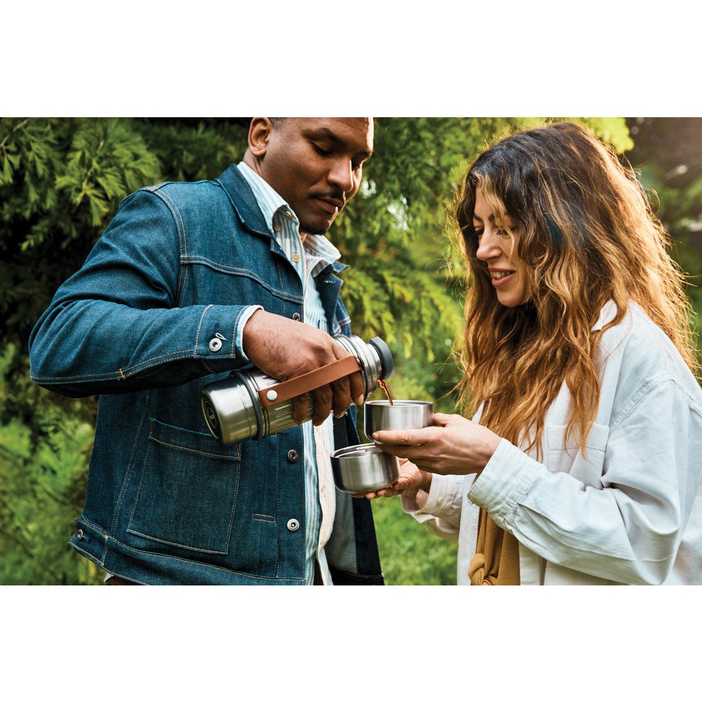 This 1L vacuum-insulated stainless steel flask is built for every kind of adventure, whether you're heading out on the trail, relaxing at the beach, or tackling the slopes. With its reinforced structure and durable design, it keeps drinks piping hot or ice cold for up to 24 hours. Completely leakproof, it features a steel cap lid with an easy pouring mechanism and two double-walled stainless steel cups for sharing. The wide-based cups offer extra stability on uneven ground, while a thick nylon strap makes it easy to carry or pour. A silicone gasket prevents drips when the cups are stored, and the flask is dishwasher-safe once the strap is removed.