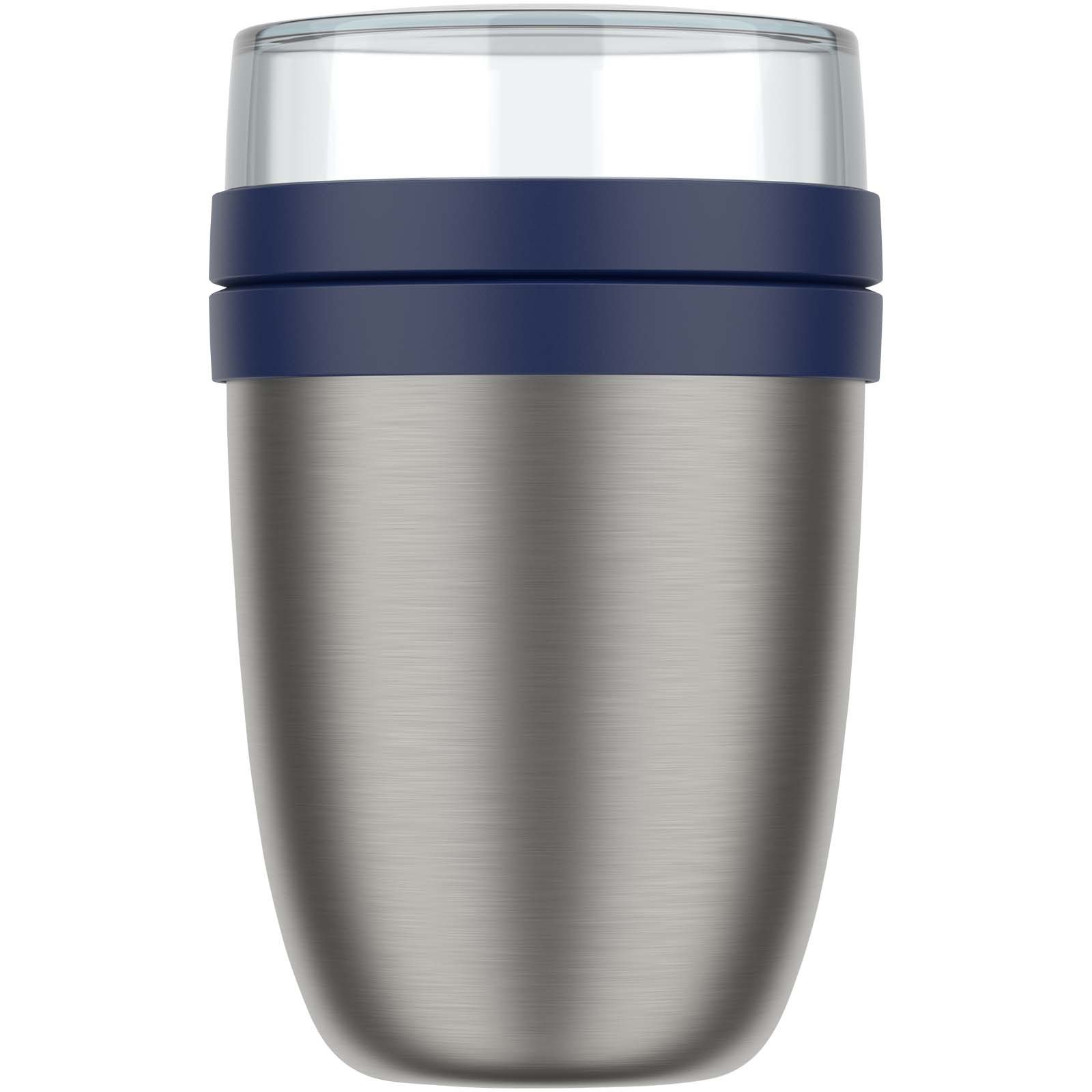 Insulated lunch pot featuring two different compartments to keep the different ingredients separated. Both containers have a separate lid so that the ingredients don't mix. Keeps food warm for 6-8 hours or cold for 12 hours. The content of the top transparent container is 200 ml. The capacity of the bottom container is 500 ml. Made of durable material, and the outside of the pot stays cool and dry. Washing by hand is recommended. The plastic parts of the cap can be put in the dishwasher.