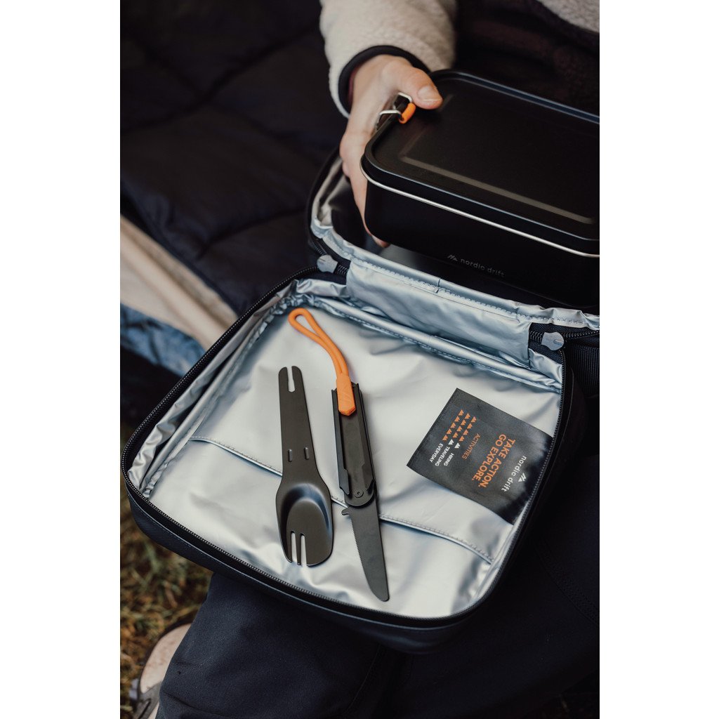 The Nordic Drift Trail 4-in-1 outdoor cutlery is a premium eating tool designed for outdoor adventures. Combining a fork, knife, and spoon in one compact tool, it’s made from high-grade stainless steel with an extra durable, food-safe titanium coating for long-lasting use. Easy to clean and built to withstand frequent use on the trail or at camp, it includes a silicone strap to keep the cutlery neatly secured and easy to carry.