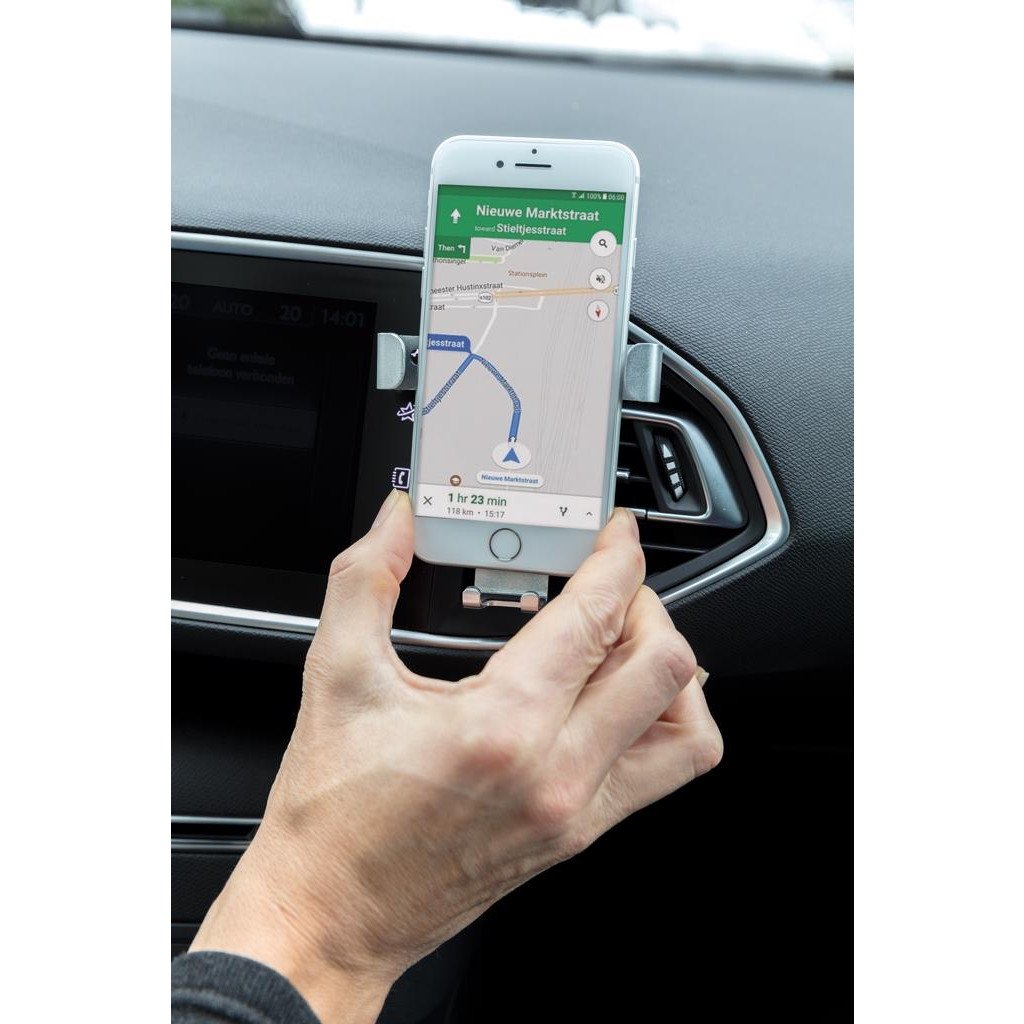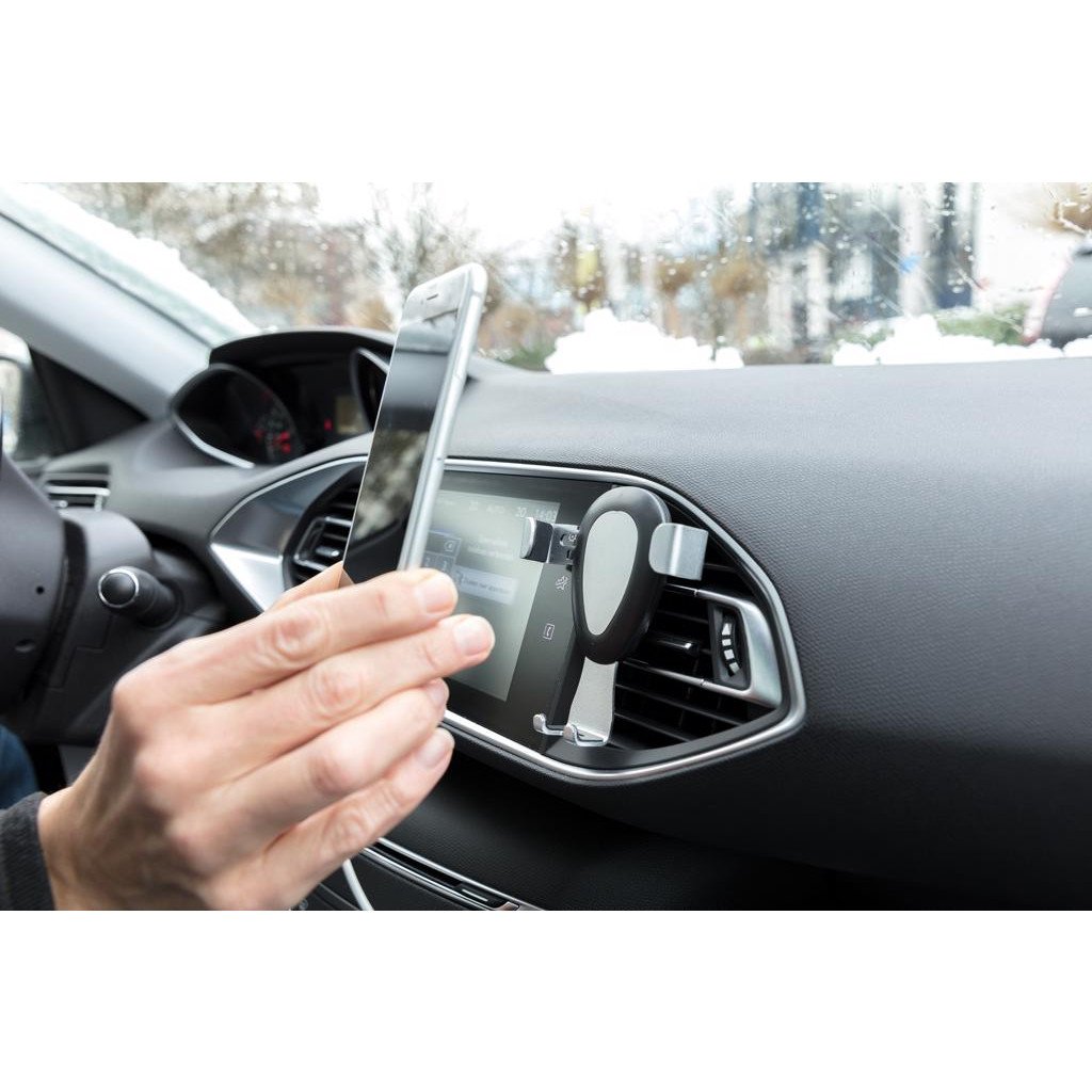 Support de téléphone universel, facile à fixer sur la grille d'aération de ta voiture et sûr pour l'utilisation à une main. Les bras de préhension en alliage d'aluminium réglables maintiendront ton téléphone en place même sur les routes les plus cahoteuses grâce à sa conception intelligente et solide. Le bras inférieur possède un trou pour faire passer le fil afin que tu puisses charger ton téléphone sur la route. Compatible avec les lames d'aération horizontales et verticales; convient pour tous les téléphones 4-6".