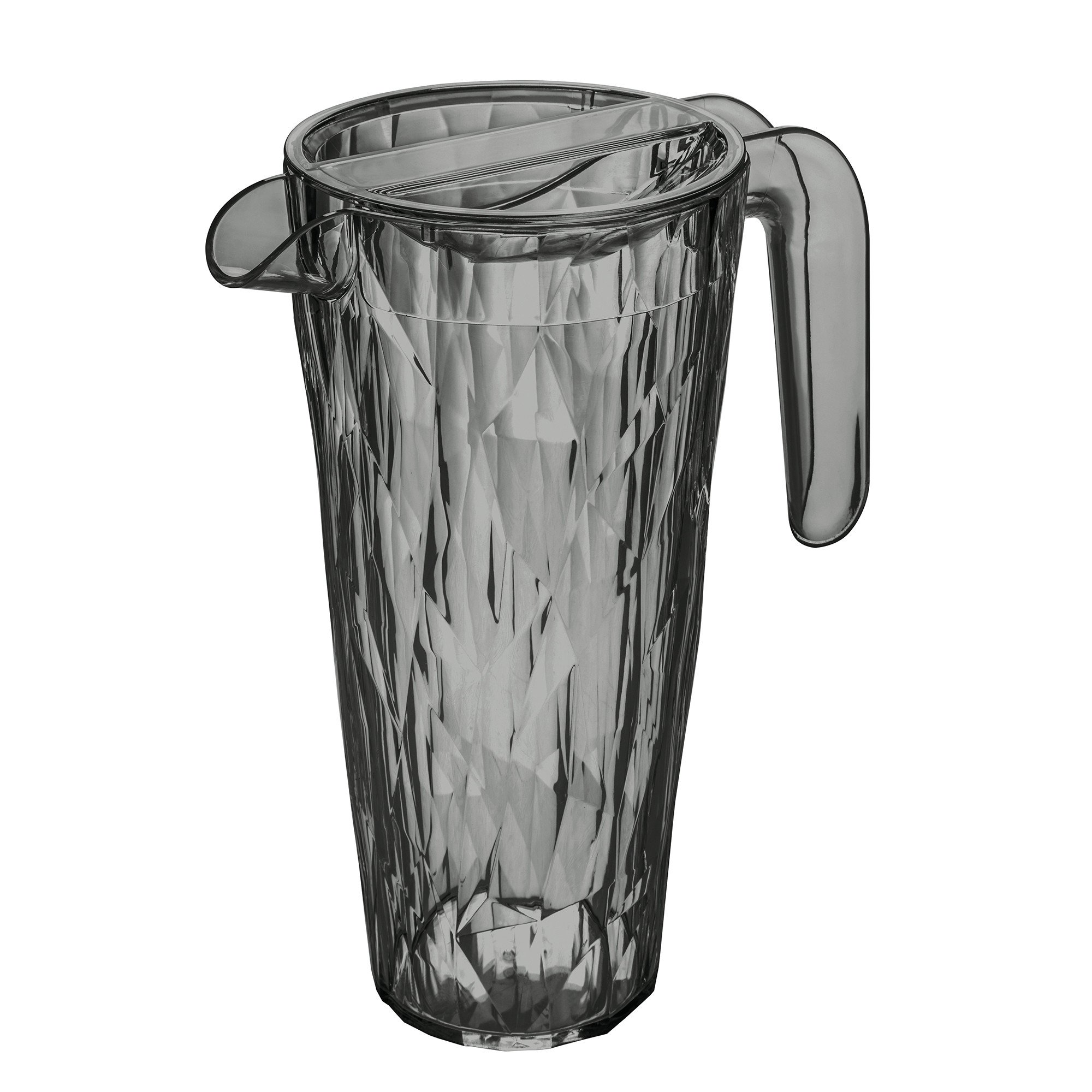 Le pichet empilable. Ce pichet volumineux peut contenir jusqu'à 1,5 litre, il est magnifique et le meilleur : il est vraiment empilable ! Enfin, plus besoin de se demander où ranger ses pichets - car nous savons tous qu'il est agréable d'en avoir plusieurs. Le matériau robuste Superglas est pratiquement incassable et permet de conserver les boissons fraîches plus longtemps. Le couvercle est doté de deux becs verseurs différents, ce qui permet de garder les glaçons et les rondelles de citron là où ils doivent être : à l'intérieur. Tournez le couvercle de 90 degrés et le pichet est hermétiquement fermé, à l'abri des insectes et de la poussière.