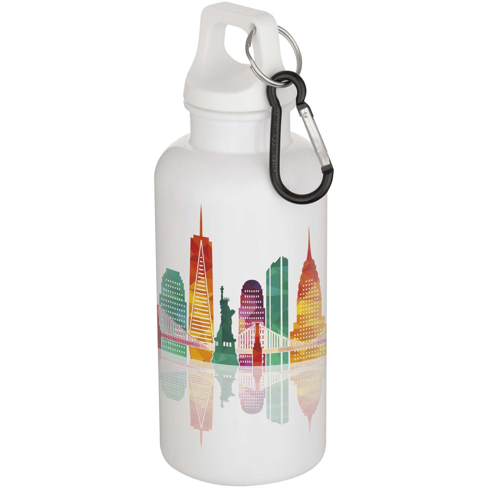 Rester hydraté à tout moment est possible avec cette gourde durable et légère de 400 ml en PET recyclé certifié RCS. C'est le compagnon idéal pour l'exercice, les excursions d'une journée ou au bureau. La bouteille Oregon à simple paroi et de finition mate offre beaucoup d’espace pour ajouter votre logo. Attachez solidement le mousqueton (ne convient pas pour l'escalade) à un sac pour éviter de le perdre.