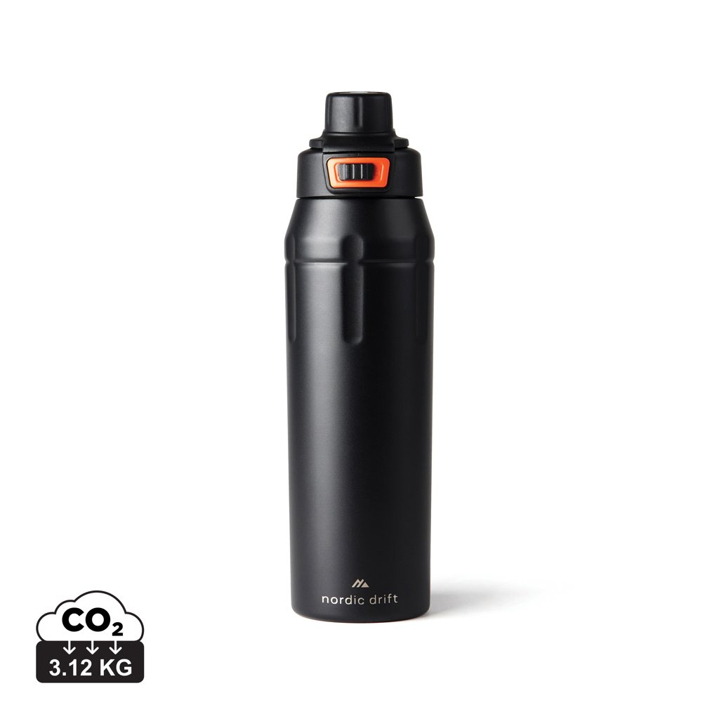 Découvrez la bouteille de sport Nordic Drift, fabriquée à partir de 79 % d'acier inoxydable recyclé certifié RCS. Conçue pour l'aventure avec une capacité de 750 ml, elle est dotée d'un corps durable recouvert d'un revêtement par poudrage, d'une poignée de transport et d'un couvercle verrouillable. Le couvercle innovant offre deux options pour boire : il suffit de tourner le bec verseur pour passer en mode « sip » et s'hydrater facilement pendant vos déplacements. Étanche et conçue pour les aventures en plein air et l'usage quotidien, cette bouteille allie praticité et durabilité. Livrée dans un coffret cadeau FSC.