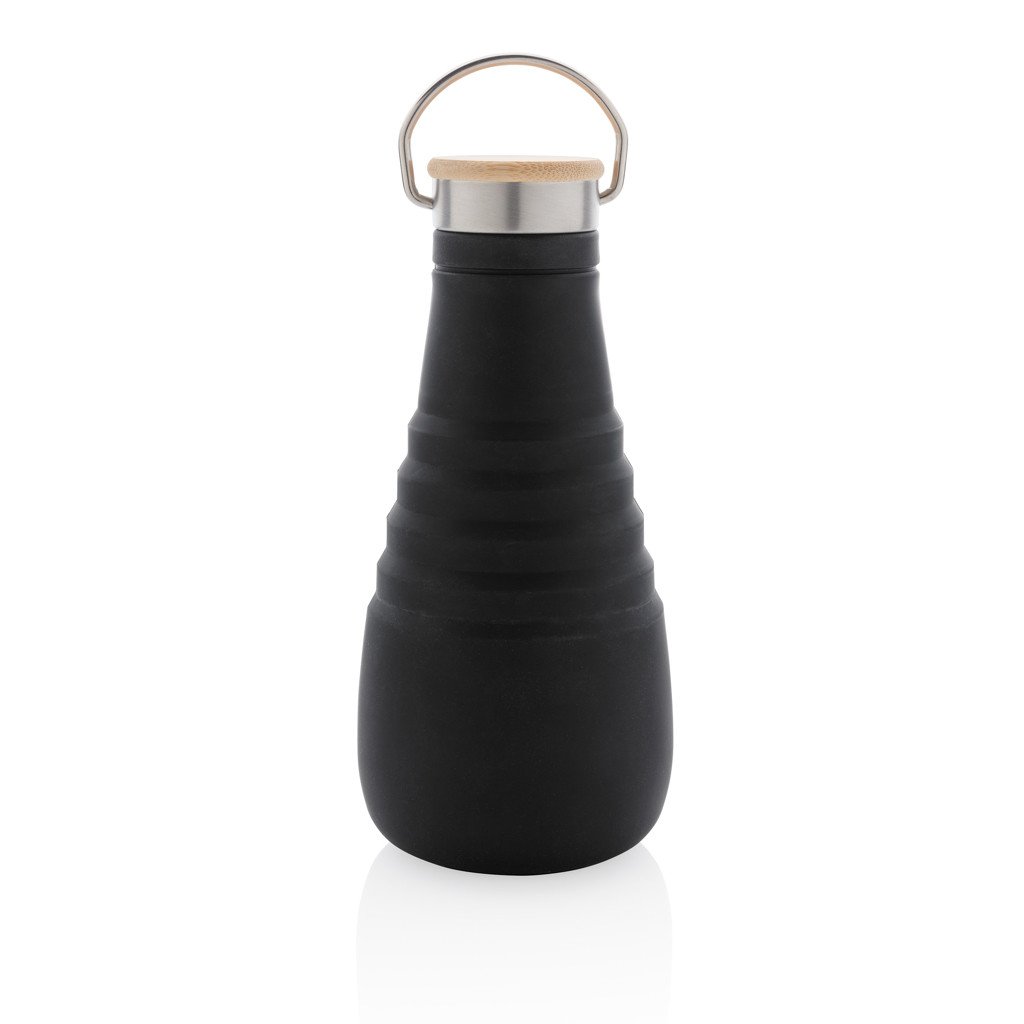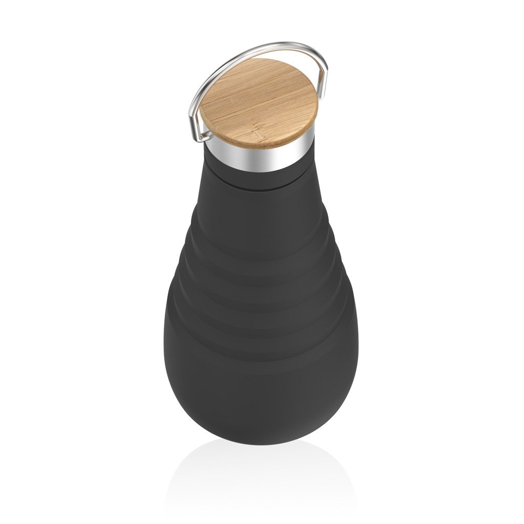 Bouteille 600 ml en silicone au design unique et pliable pour vous permettre de gagner beaucoup de place dans votre sac ! Le couvercle étanche est muni d'une poignée pour faciliter le transport. Sans BPA