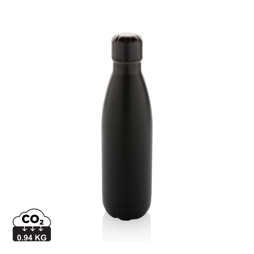 Bouteille 500 ml en acier inoxydable à simple paroi, convient uniquement aux boissons froides. Avec une base qui s'adapte à la plupart des porte-gobelets, cette bouteille d'eau à l'allure élégante vous permettra de vous hydrater lors de vos déplacements, où que vous soyez. Fabriquée avec des matériaux recyclés certifiés RCS (Recycled Claim Standard). La certification RCS garantit une chaîne d'approvisionnement entièrement certifiée pour les matériaux recyclés. Contenu recyclé total : 84 % sur la base du poids total de l'article. Sans BPA. Emballage kraft certifié FSC® inclus.