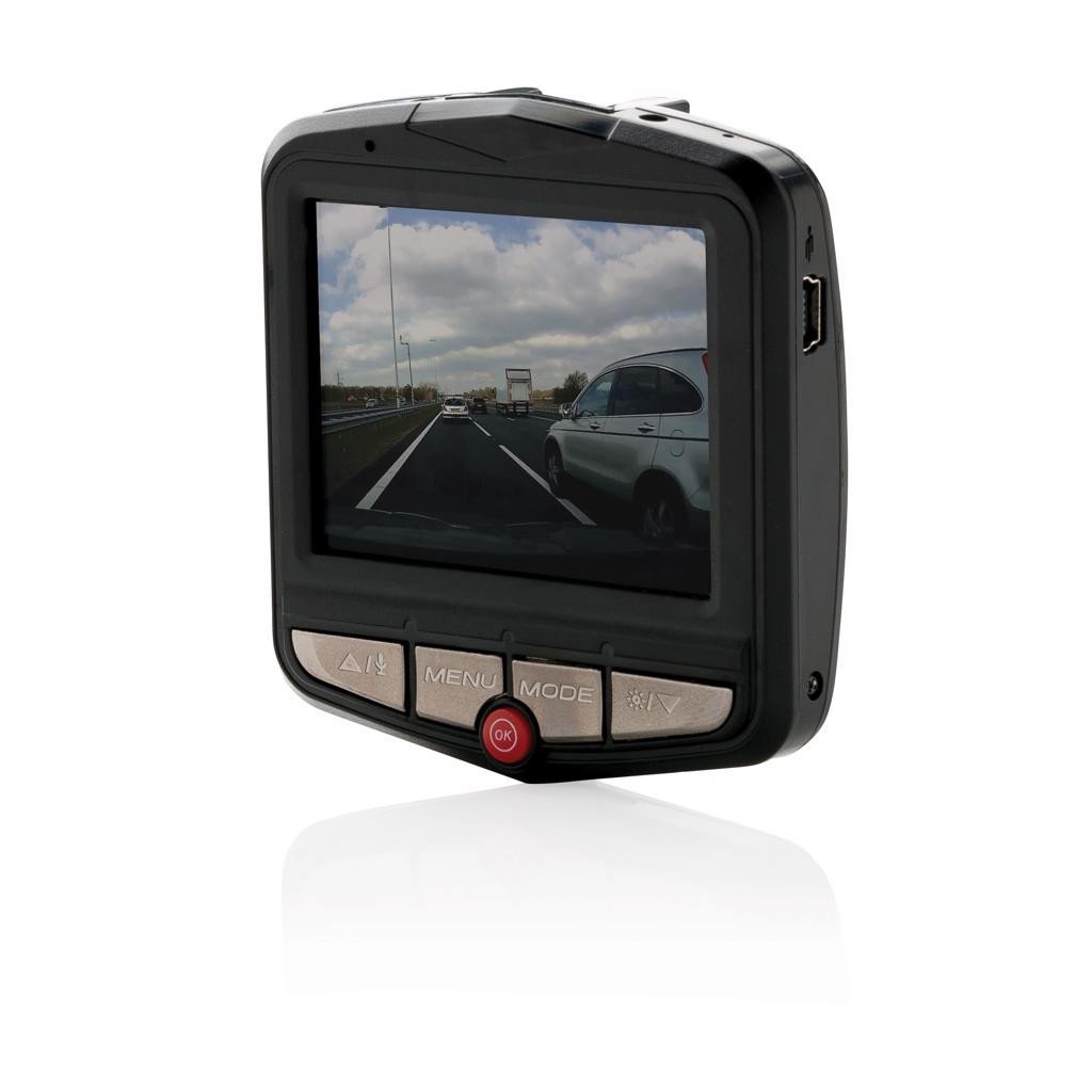Dashcam facile à installer et à utiliser, avec écran 2.4" d'une résolution de 1080 x 720. Commence à enregistrer automatiquement au démarrage de la voiture et lorsque l'appareil est connecté au chargeur de voiture. Avec micro pour enregistrement du son, mode de vision nocturne pour enregistrer dans l'obscurité, et option grand angle pour faire des prises plus larges. Écrase automatiquement lorsque la mémoire étendue (non fournie) est pleine. Support à ventouse orientable inclus.