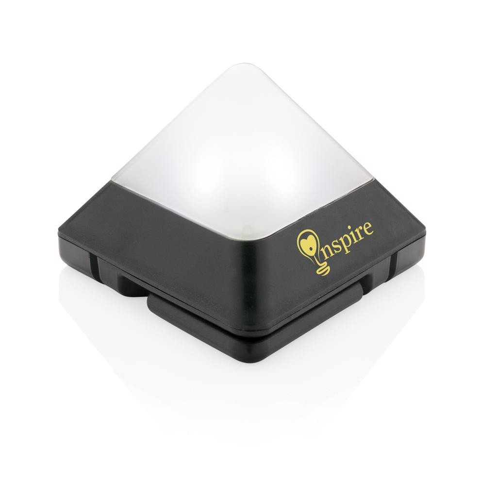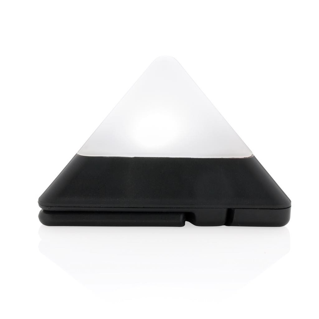 Lampe en forme de triangle en ABS durable avec un crochet escamotable qui peut être utilisé pour l'accrocher n'importe o๠et de 2 aimants pour fixation sur des surfaces métalliques. La lumière peut être réglée en 3 modes : forte, faible et urgence.