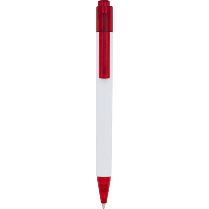 Le stylo à bille Calypso est doté d’un corps blanc élégant avec un clip de couleur translucide.