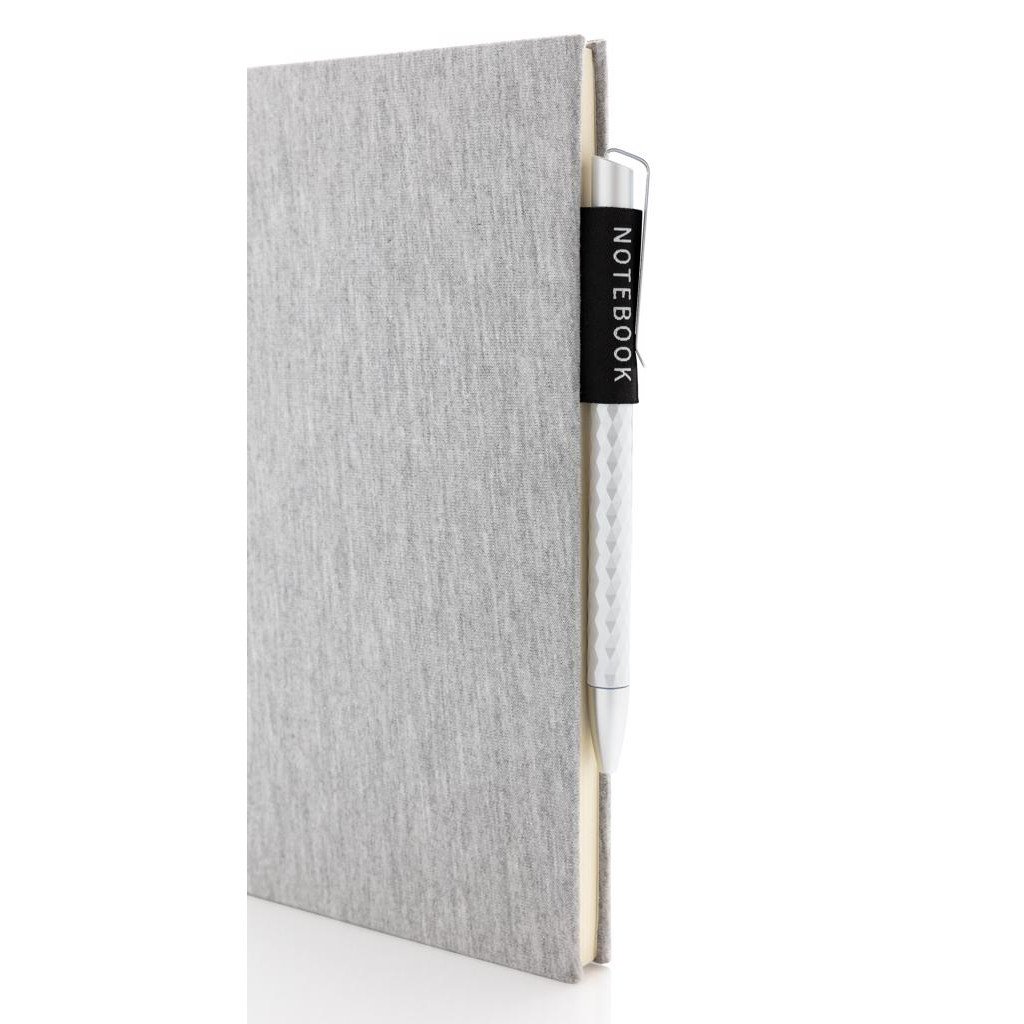 Carnet de notes A5 à couverture rigide recouvert de jersey, 160 pages de 80g/m² (papier crème) et avec marque-page.