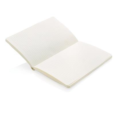 Carnet de notes 210x130mm à couverture souple et fermeture élastique, 160 pages de 80g/m² (papier crème), lignes noires.