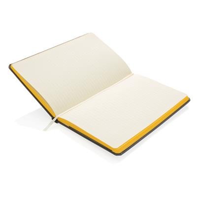 Carnet de notes A5 ligné en tissu à la mode avec faces colorées. 240 pages de 80g/m² à l'intérieur. Pages de couleur crème. Les côtés des pages sont assortis à l'élastique.