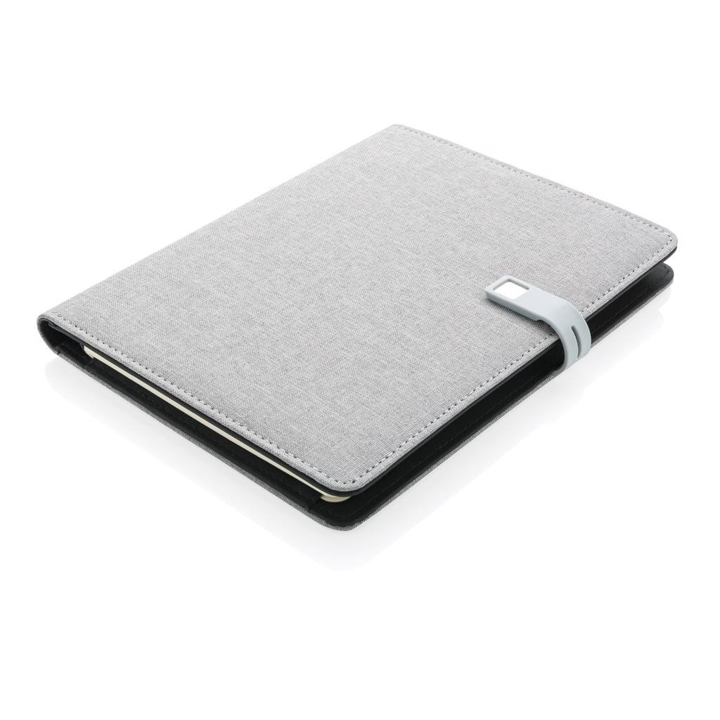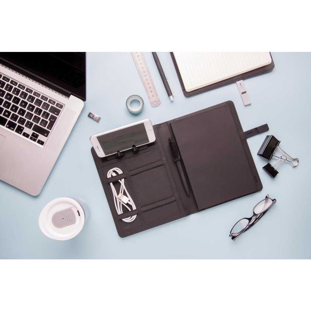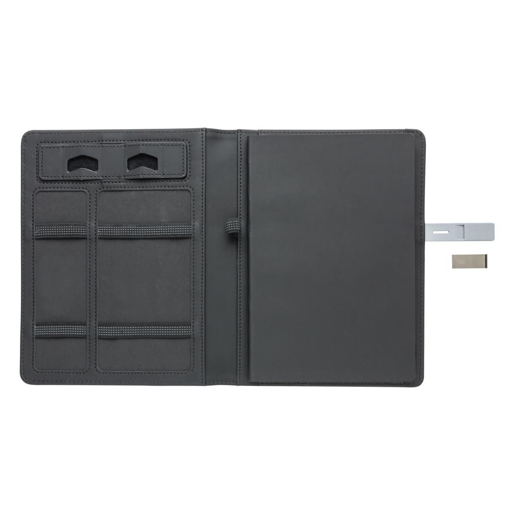 Carnet de notes A5 Kyoto avec support téléphone, pochettes pour cartes de visite ou autres accessoires et une clé USB 16Go 2.0 à l'intérieur de la fermeture magnétique. 128 pages 80g/m². Modèle déposé®.