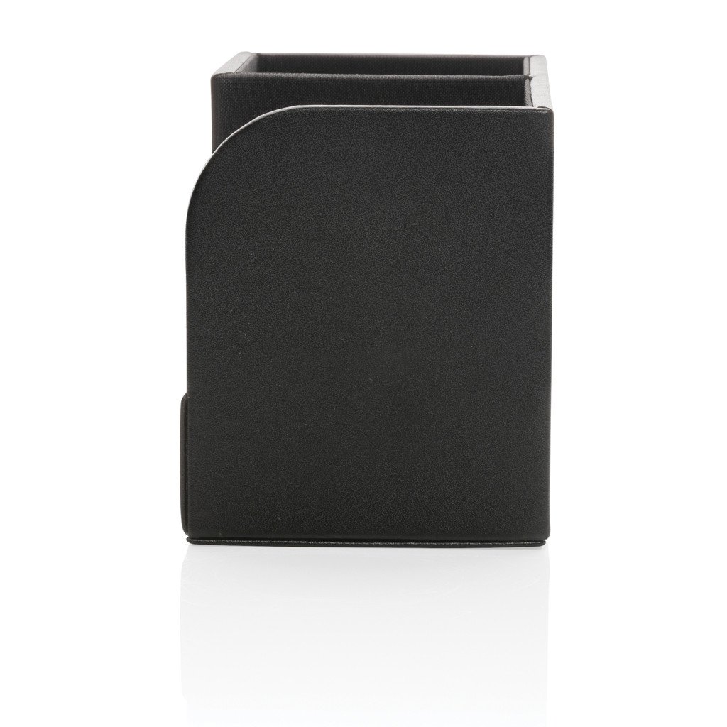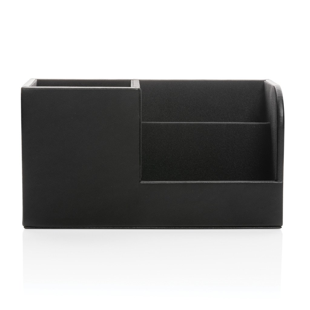 Organiseur de bureau fabriqué en PU recyclé certifié RCS à l’extérieur et Bois MDF à l’intérieur, parfait pour ranger les éléments essentiels de votre travail. La certification RCS (Recycled Claim Standard) garantit une chaîne d'approvisionnement entièrement certifiée pour les matériaux recyclés. Cet organisateur lisse et luxueux transforme n'importe quel bureau en un excellent environnement de travail. Contenu recyclé total : 6,5 % sur la base du poids total de l'article. Sans PVC.