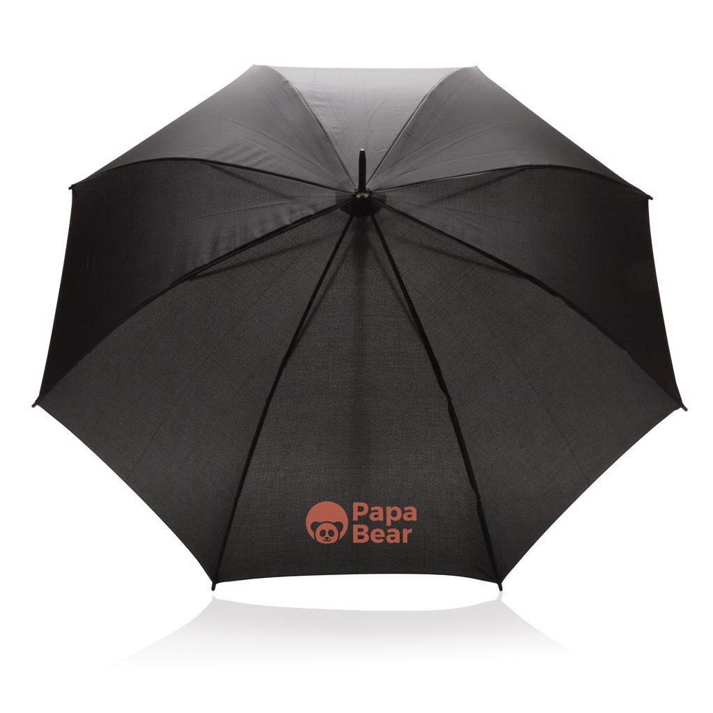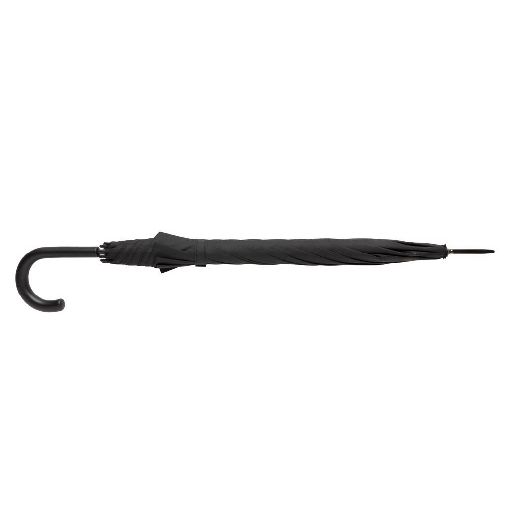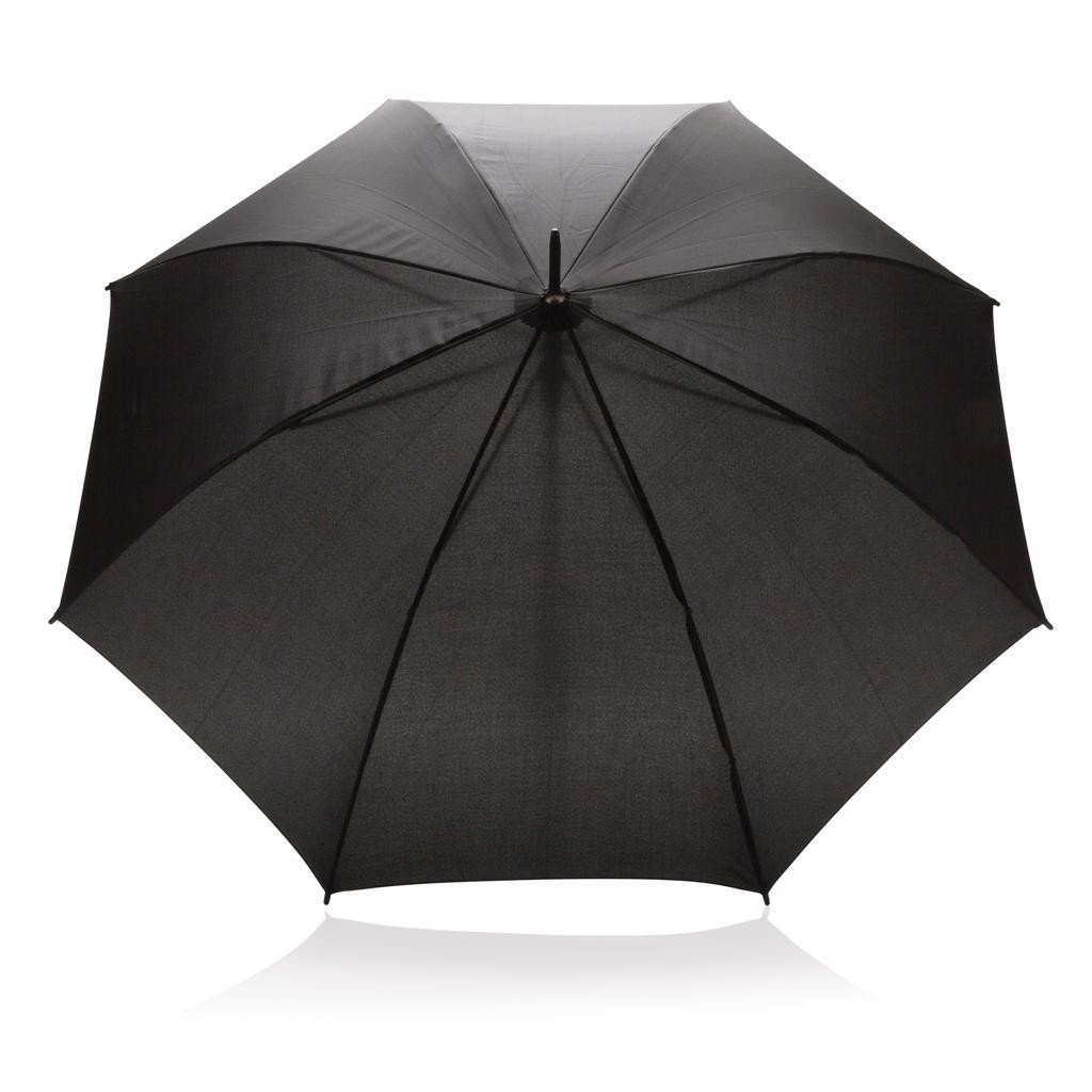 Parapluie automatique en polyester pongé 190T avec manche en métal, baleines en fibre de verre, embouts en PP, poignée noire mate. Avec fonction anti-tempête.